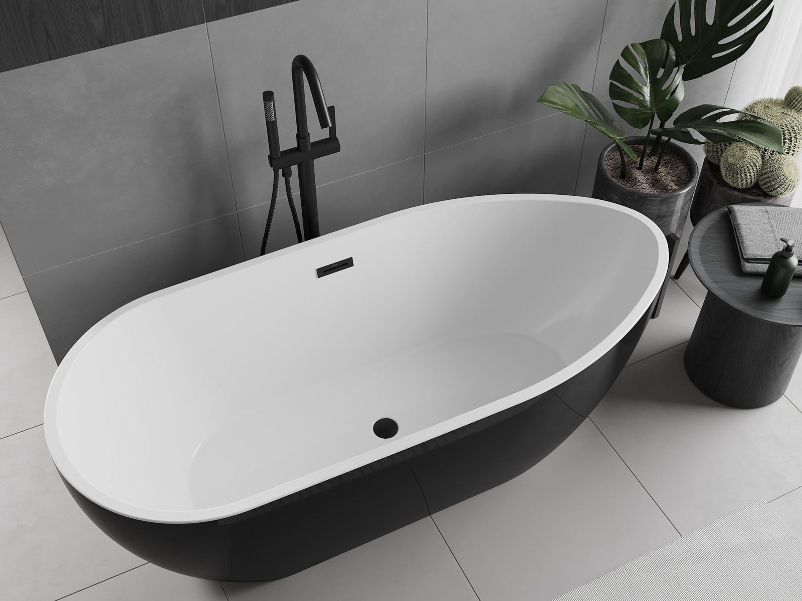 Mexen Eos baignoire autoportante 150 x 75 cm, blanche/noire, trop-plein noir - 52471507575-70