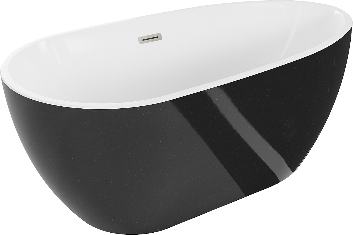 Mexen Eos baignoire autoportante 150 x 75 cm, blanc/noir, trop-plein nickel brossé - 52471507575-97