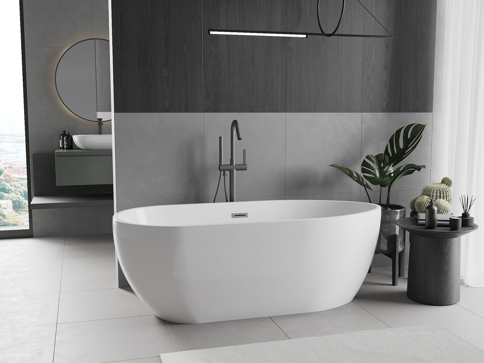 Mexen Eos baignoire autoportante 170 x 75 cm, blanche, trop-plein gris fusil brossé - 52471707500-66