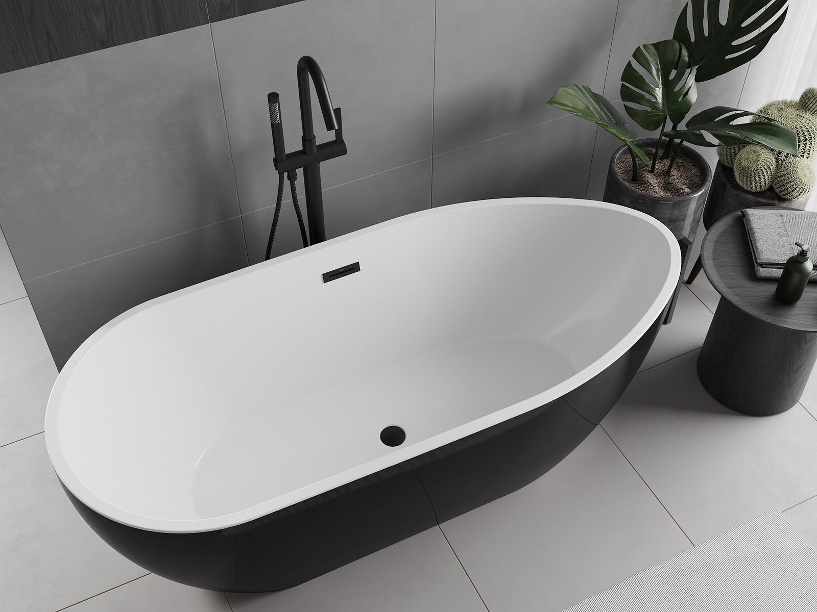 La baignoire autoportante 170 x 75 cm en couleur blanc/noir est un choix idéal pour une salle de bain moderne. Fabriquée en acrylique sanitaire, elle assure durabilité et résistance aux rayons UV ainsi qu'au ternissement. Elle se caractérise par une forme ovale élégante et une surface brillante. Dotée d'un orifice de trop-plein, elle est livrée avec un siphon et un bouchon clic-clac. Grâce à sa combinaison unique de blanc et noir, la baignoire apporte style et confort à tout intérieur.