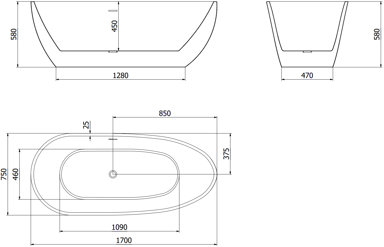 Mexen Eos baignoire autoportante 170 x 75 cm, blanc/noir, trop-plein noir - 52471707575-70