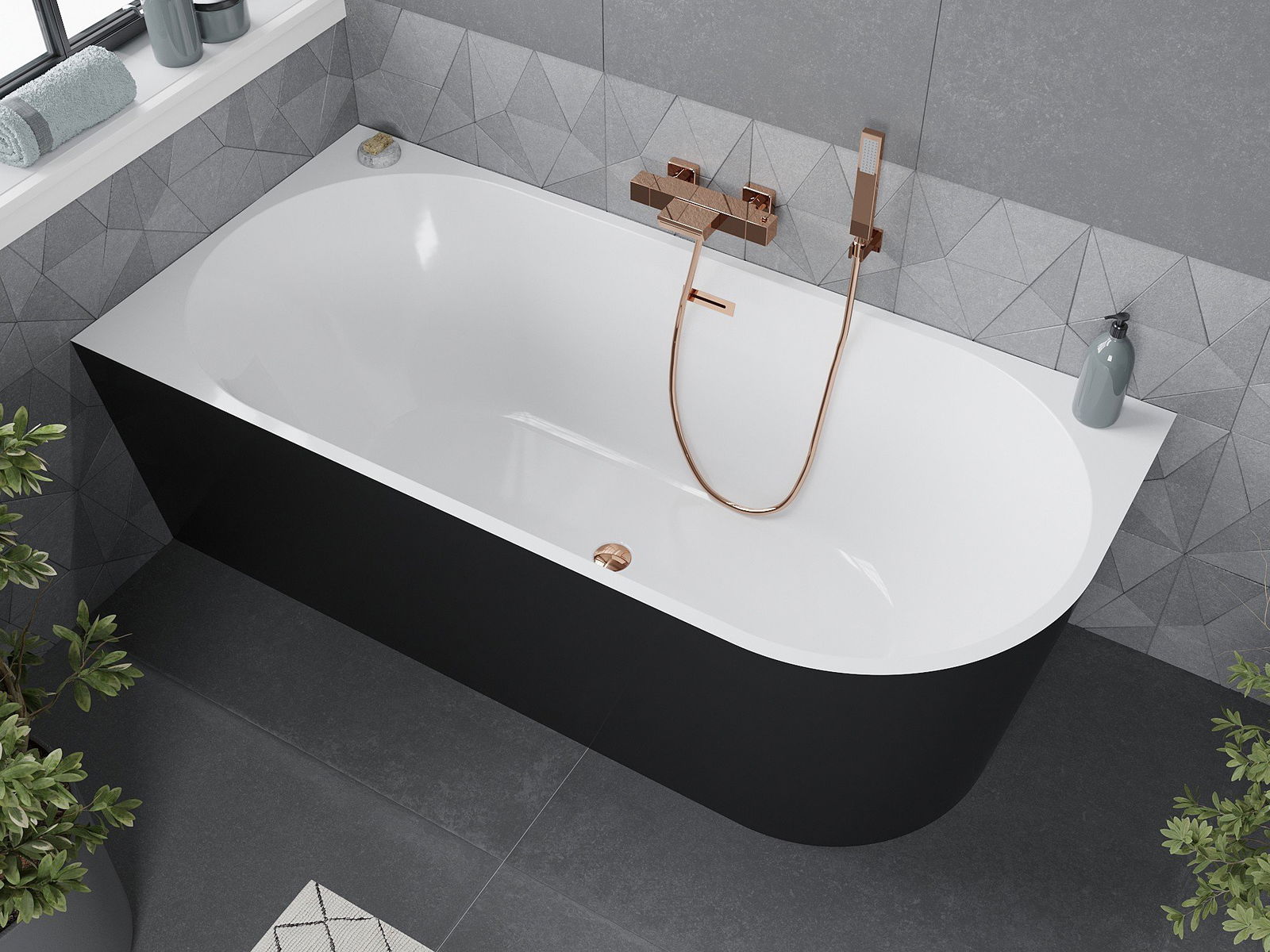 Mexen Mia baignoire autoportante d'angle gauche 150 x 75 cm, blanc/noir, trop-plein or rose - 52691507575L-60