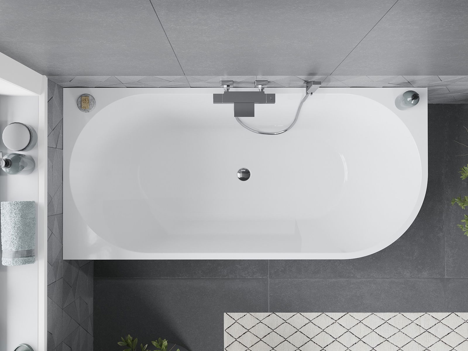 Mexen Mia est une baignoire autoportante d'angle moderne de dimensions 160 x 75 cm, idéale pour tout style de salle de bain. Son matériau acrylique sanitaire assure durabilité et facilité d'entretien. La baignoire est de couleur blanc-noir avec une finition chromée, ce qui ajoute de l'élégance. Grâce au trop-plein central et aux propriétés résistantes au ternissement, le produit combine fonctionnalité et esthétique. Le kit comprend un siphon et un bouchon clic-clac, ce qui facilite l'installation et l'utilisation.