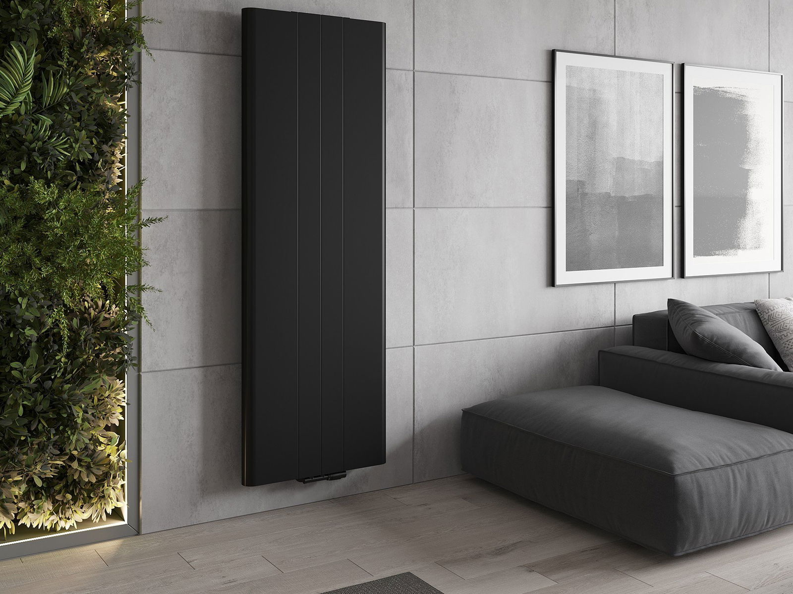 Les images montrent le radiateur en taille 600 x 1800 mm.