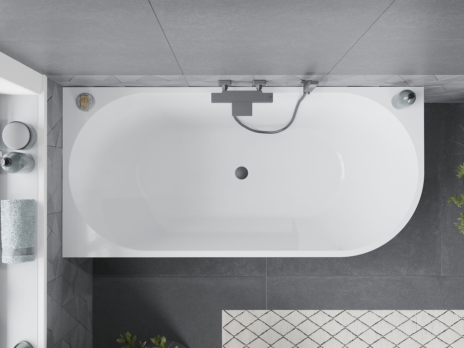 Mexen Mia baignoire autoportante d'angle gauche 170 x 80 cm, blanche/noire, trop-plein gun metal - 52691708075L-95