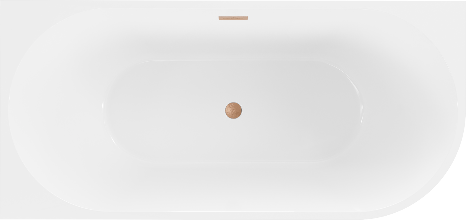 Mexen Mia baignoire autoportante d'angle gauche 180 x 80 cm, blanche, trop-plein en cuivre brossé - 52691808000L-65