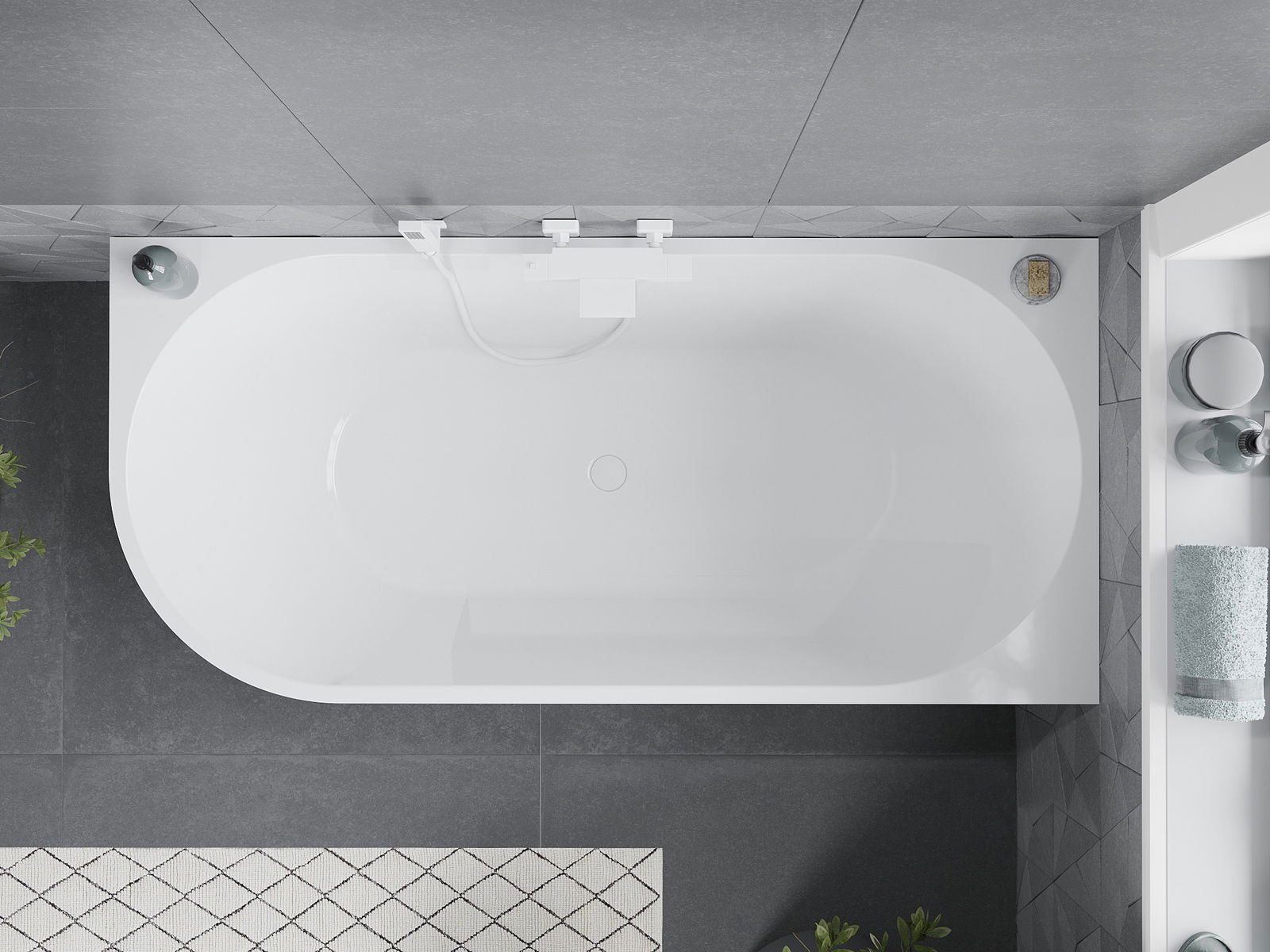 Mexen Mia baignoire autoportante d'angle droit 180 x 80 cm, blanc/noir, trop-plein blanc - 52691808075P-20