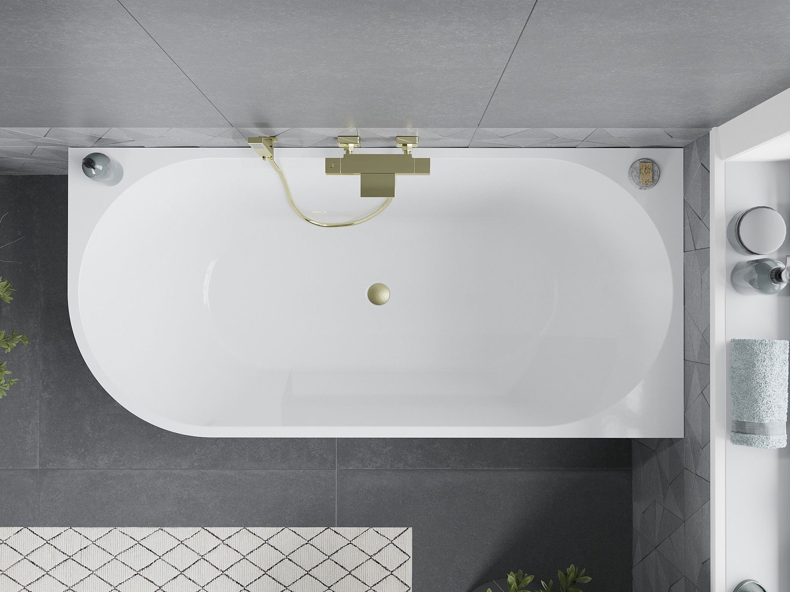 Mexen Mia baignoire autoportante d'angle droit 180 x 80 cm, blanc/noir, trop-plein or brossé - 52691808075P-55