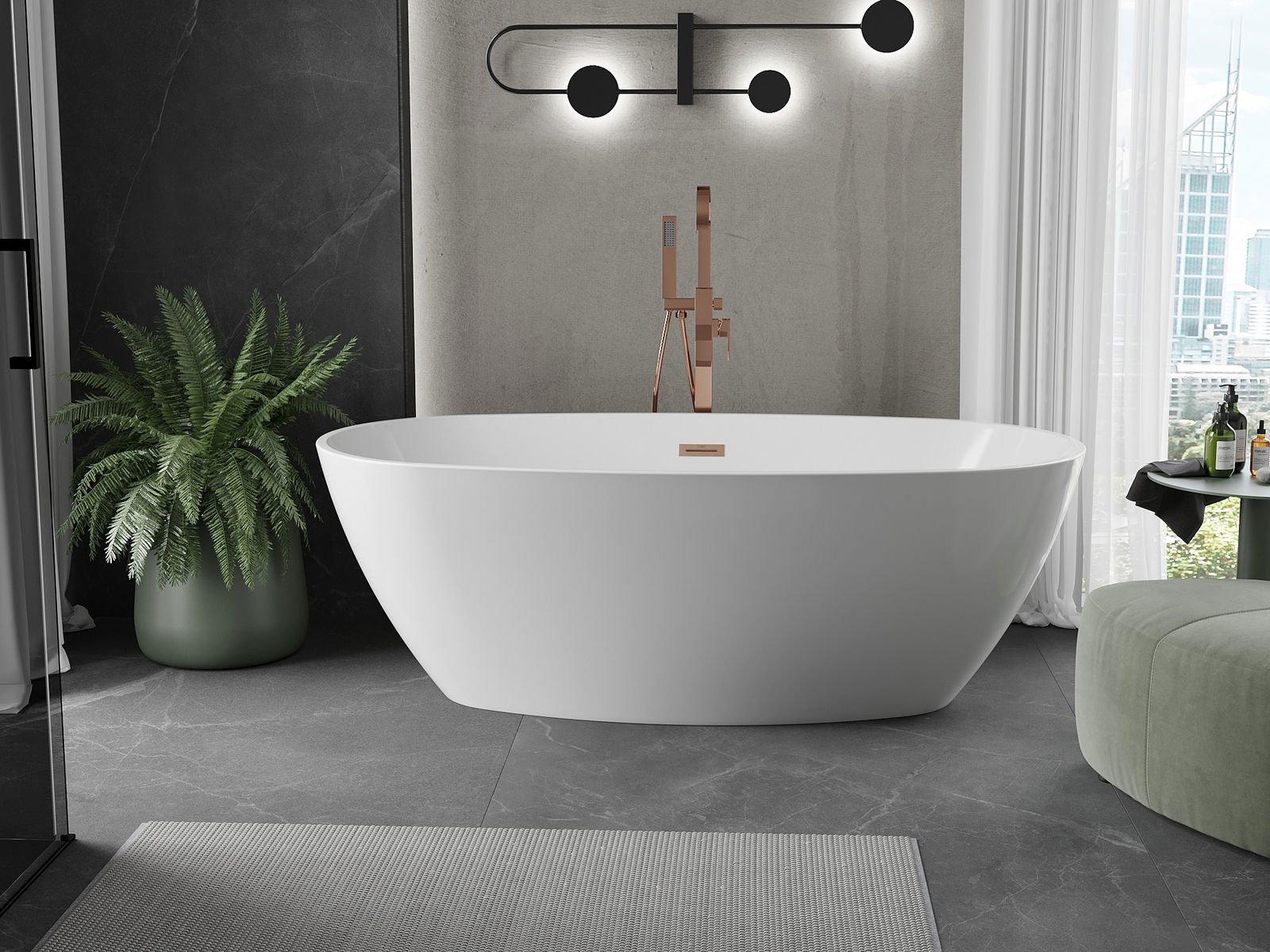 Mexen Eris baignoire autoportante 170 x 80 cm, blanche, trop-plein en cuivre brossé - 53441708000-65