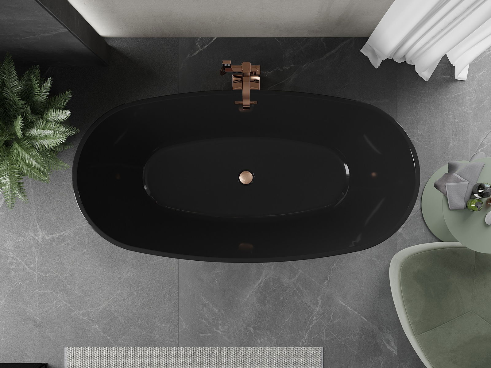 Baignoire Mexen Eris autoportante 170 x 80 cm, noire, débordement en cuivre brossé - 53441708070-65