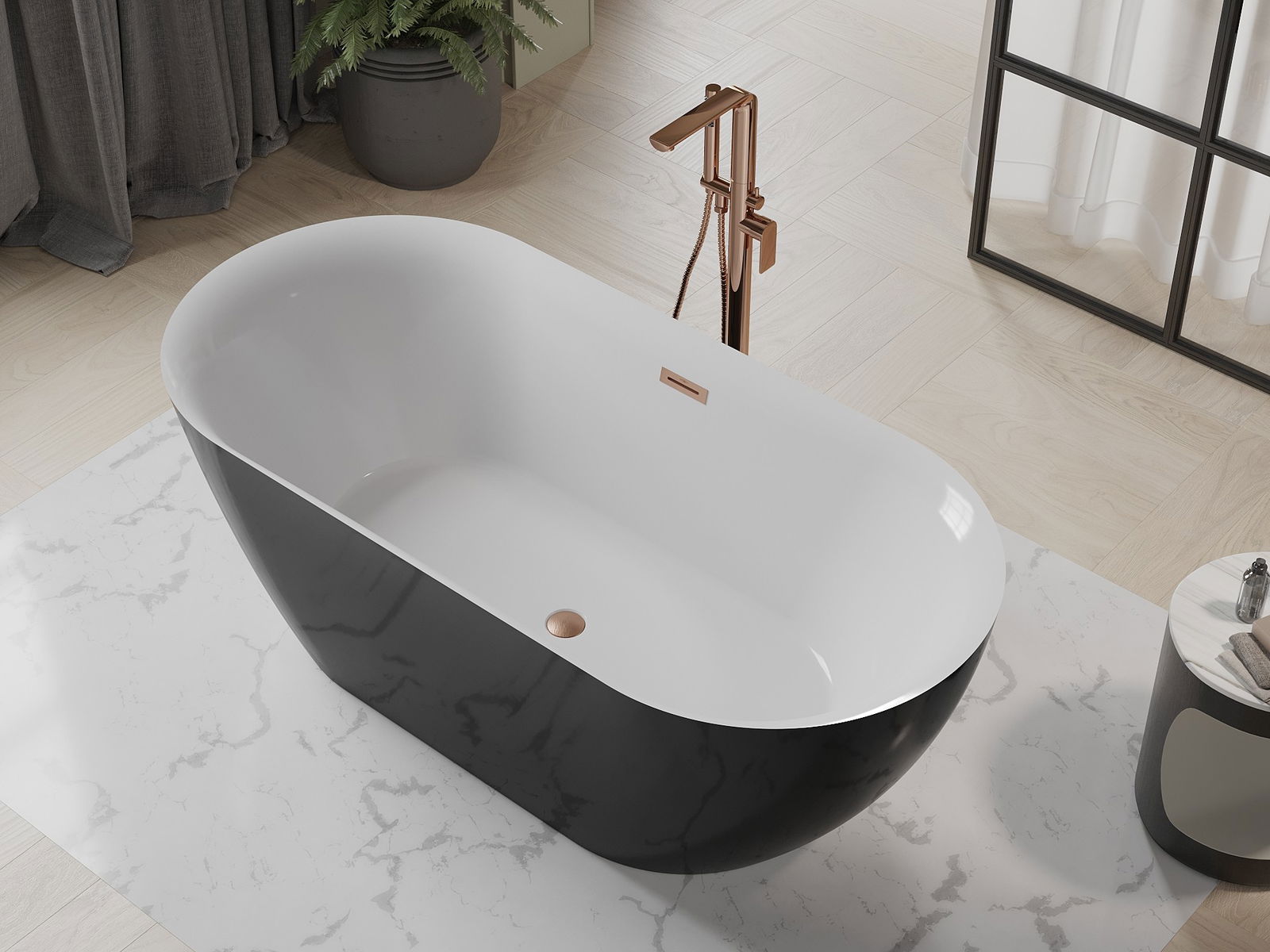 Mexen Roxy baignoire autoportante 170 x 80 cm, blanc/noir, trop-plein cuivre brossé - 51201708075-65
