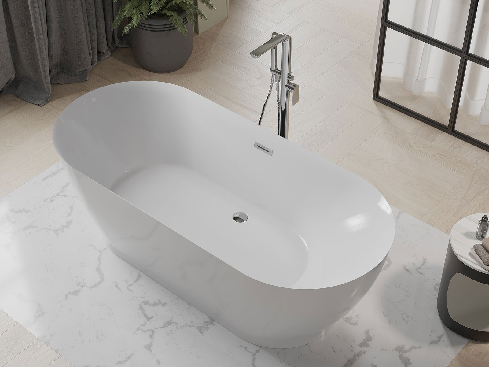Mexen Roxy baignoire autoportante 180 x 85 cm, blanche, trop-plein chromé - 51201808500-01