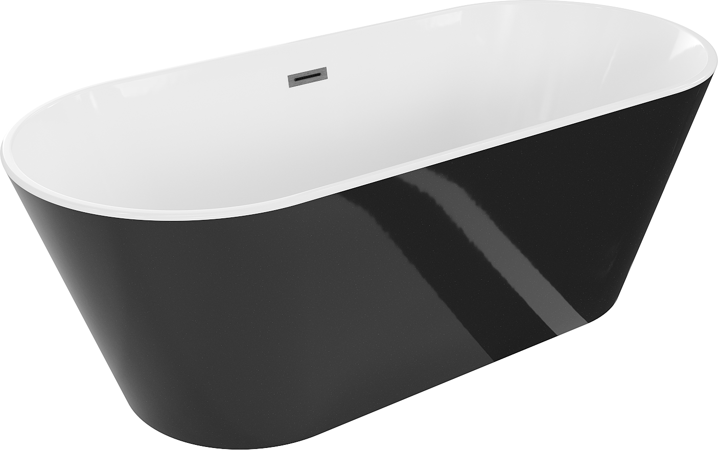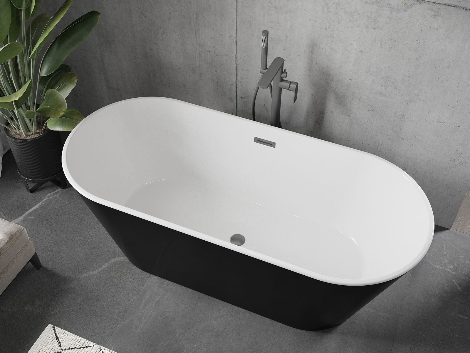 Mexen Flavia baignoire autoportante 150 x 75 cm, blanche/noire, trop-plein gris fusil brossé - 54031507575-66
