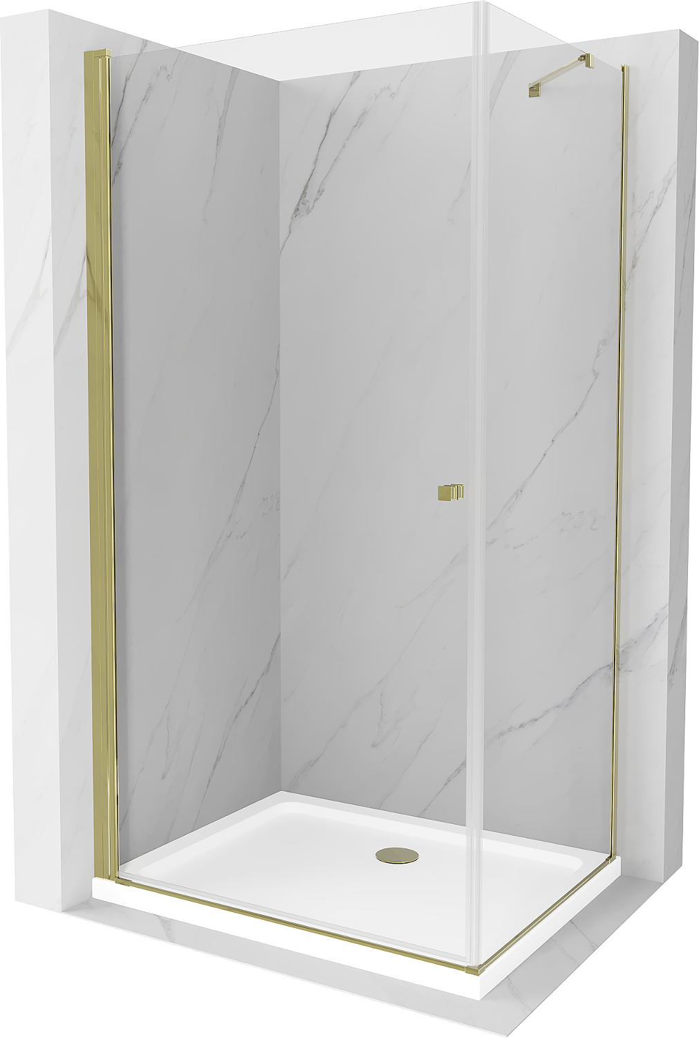 Mexen Pretoria paroi de douche pivotante 80 x 90 cm, transparent, dorée + receveur Flat - 852-080-090-50-00-4010