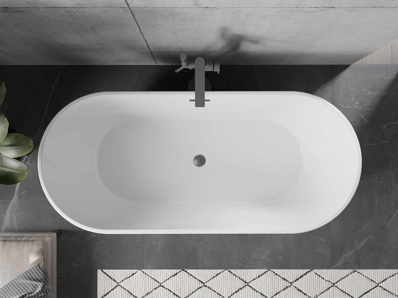 Mexen Flavia baignoire autoportante 170 x 75 cm, blanche/noire, trop-plein gris canon brossé - 54031708075-66