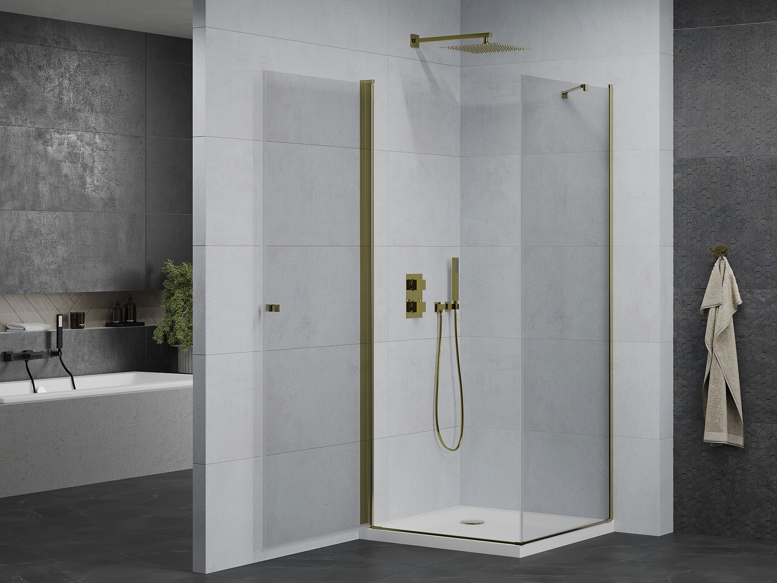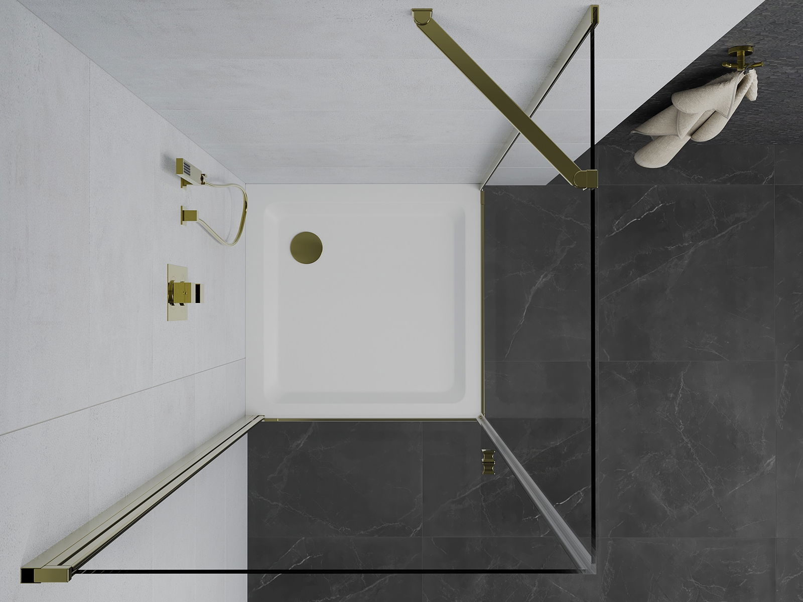 La poignée pratique et confortable est fabriquée en métal durable et résistant. Sa forme à la mode, combinée à une finition assortie à la couleur des profilés, donne à l'ensemble un aspect moderne et stylé, soulignant l'esthétique de chaque salle de bain.