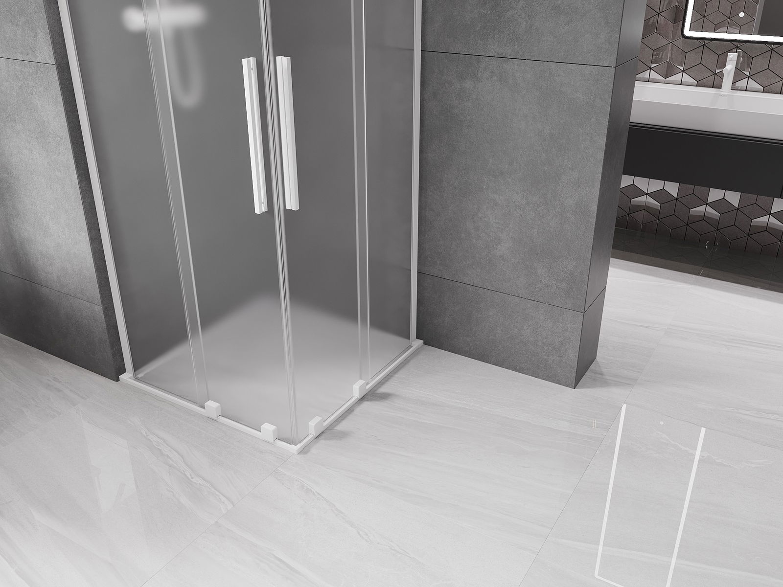 Mexen Velar L Cabine de douche coulissante duo 90 x 90 cm, givrée, blanche - 871-090-090-02-33-20