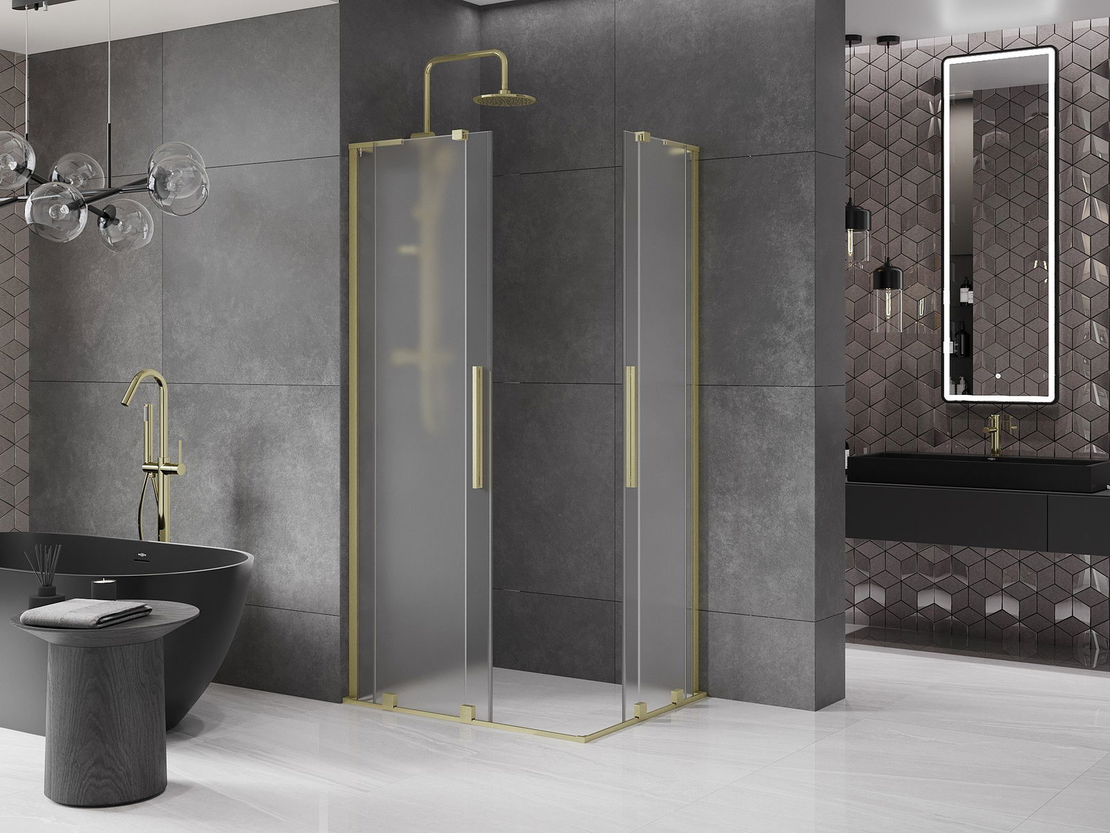 Mexen Velar L Duo cabine de douche coulissante 90 x 80 cm, givrée, or brossé - 871-090-080-02-33-55