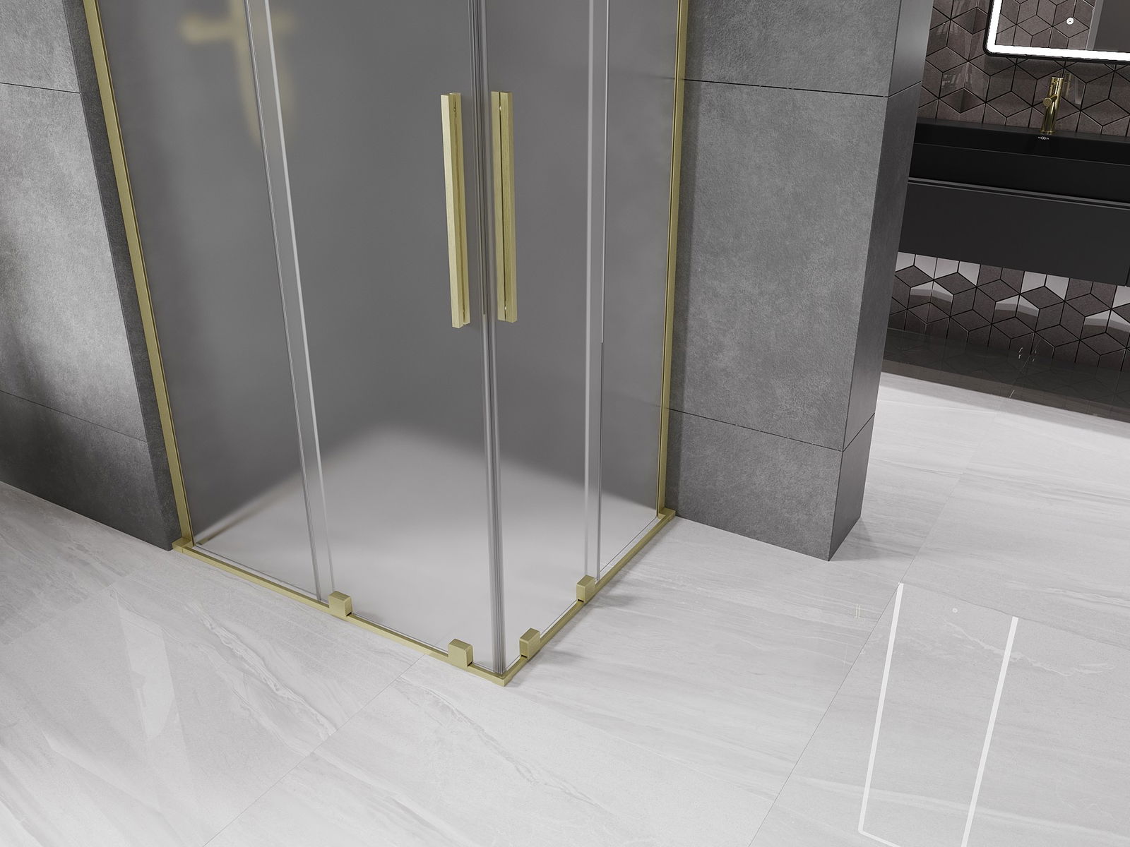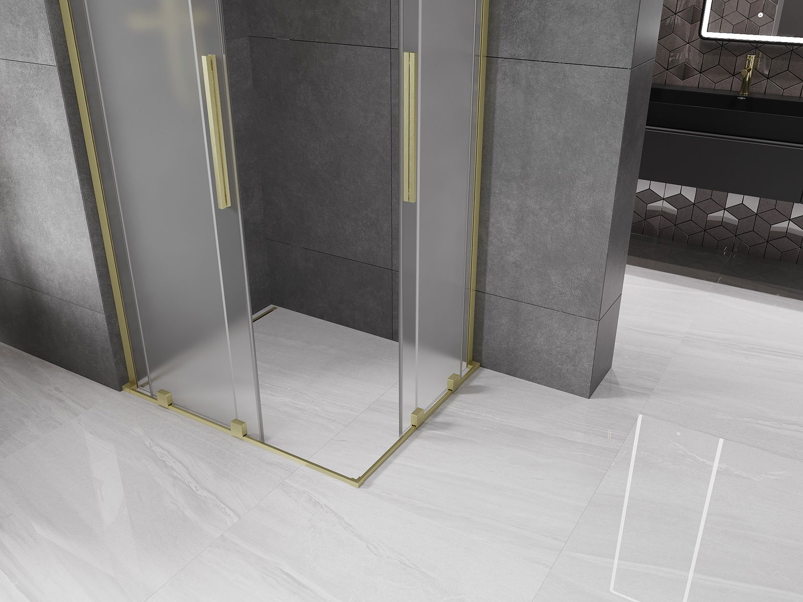 Mexen Velar L Duo cabine de douche coulissante 100 x 90 cm, dépoli, or brossé - 871-100-090-02-33-55