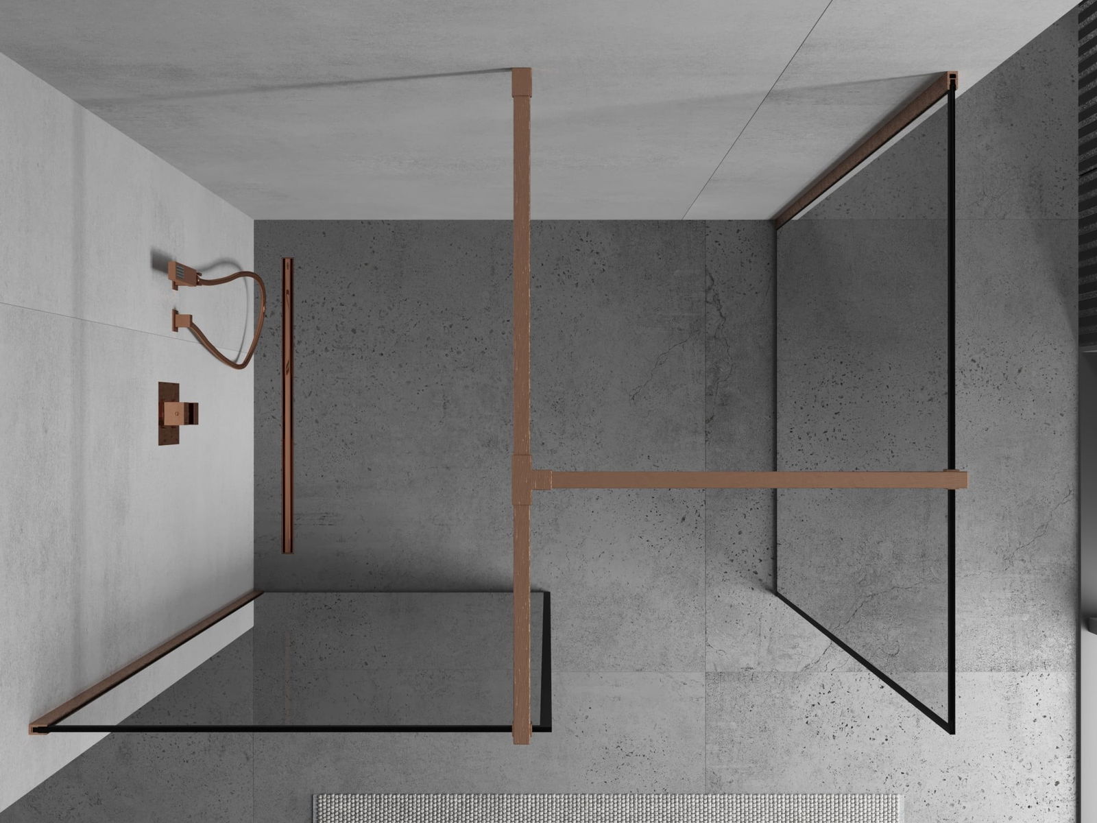 Mexen Kioto paroi de douche Walk-in 70 x 70 cm, cadre noir, cuivre brossé - 800-070-202-65-70-070