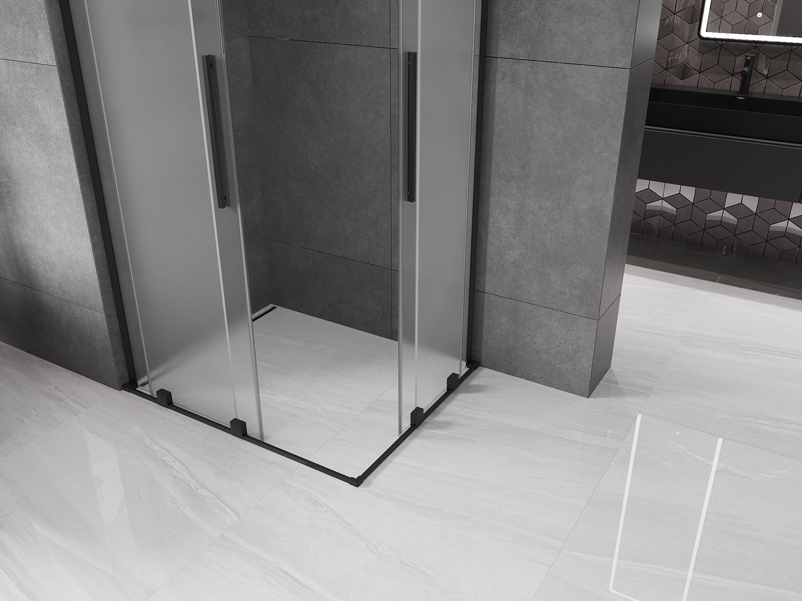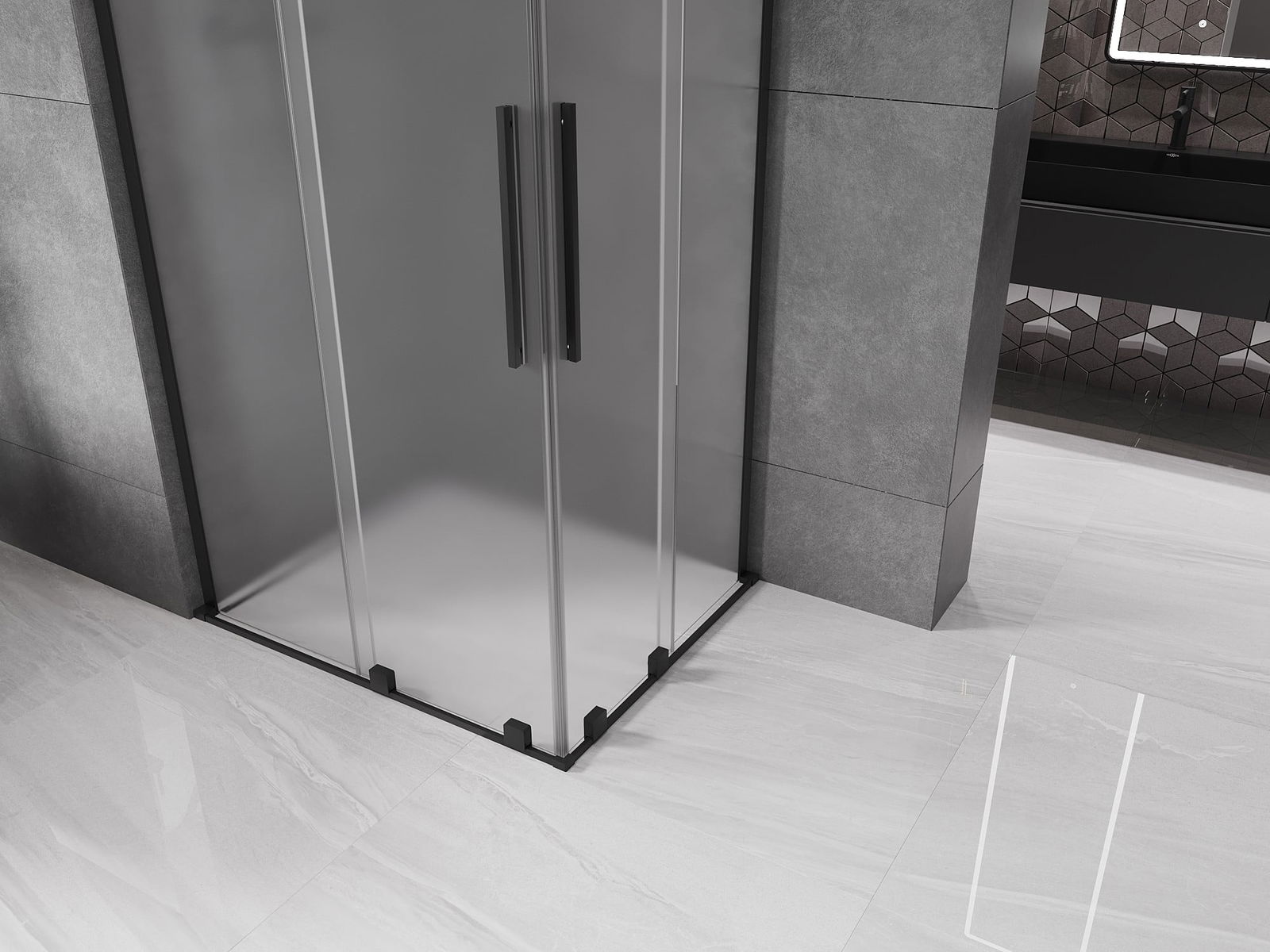 Mexen Velar L Duo cabine de douche coulissante 90 x 80 cm, givre, noir - 871-090-080-02-33-70