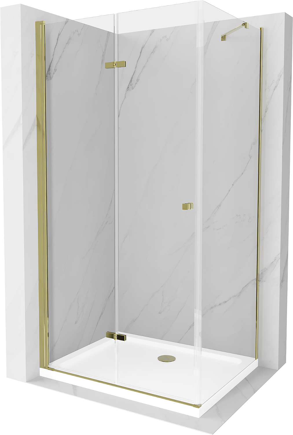 Mexen Lima cabine de douche pliante 100 x 70 cm, transparent, or + receveur Flat - 856-100-070-50-00-4010