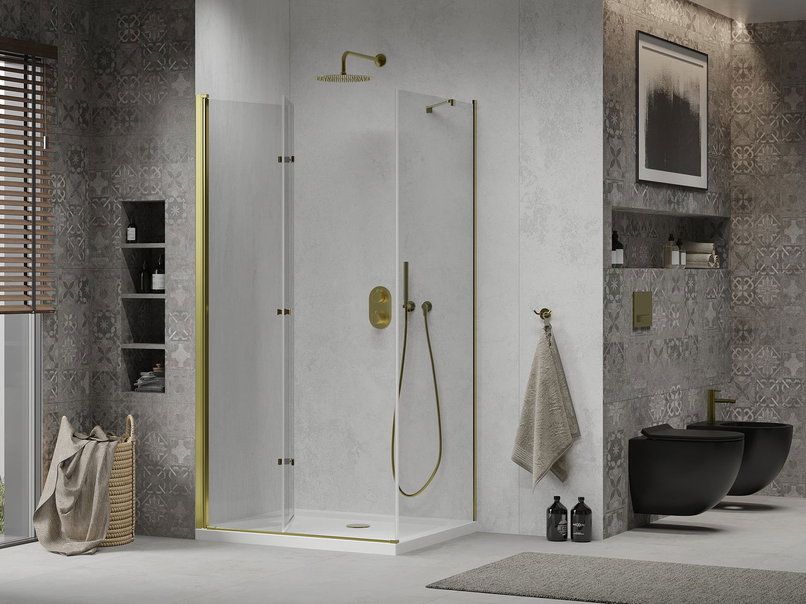 Mexen Lima cabine de douche pliante 100 x 80 cm, transparent, or + receveur Flat - 856-100-080-50-00-4010