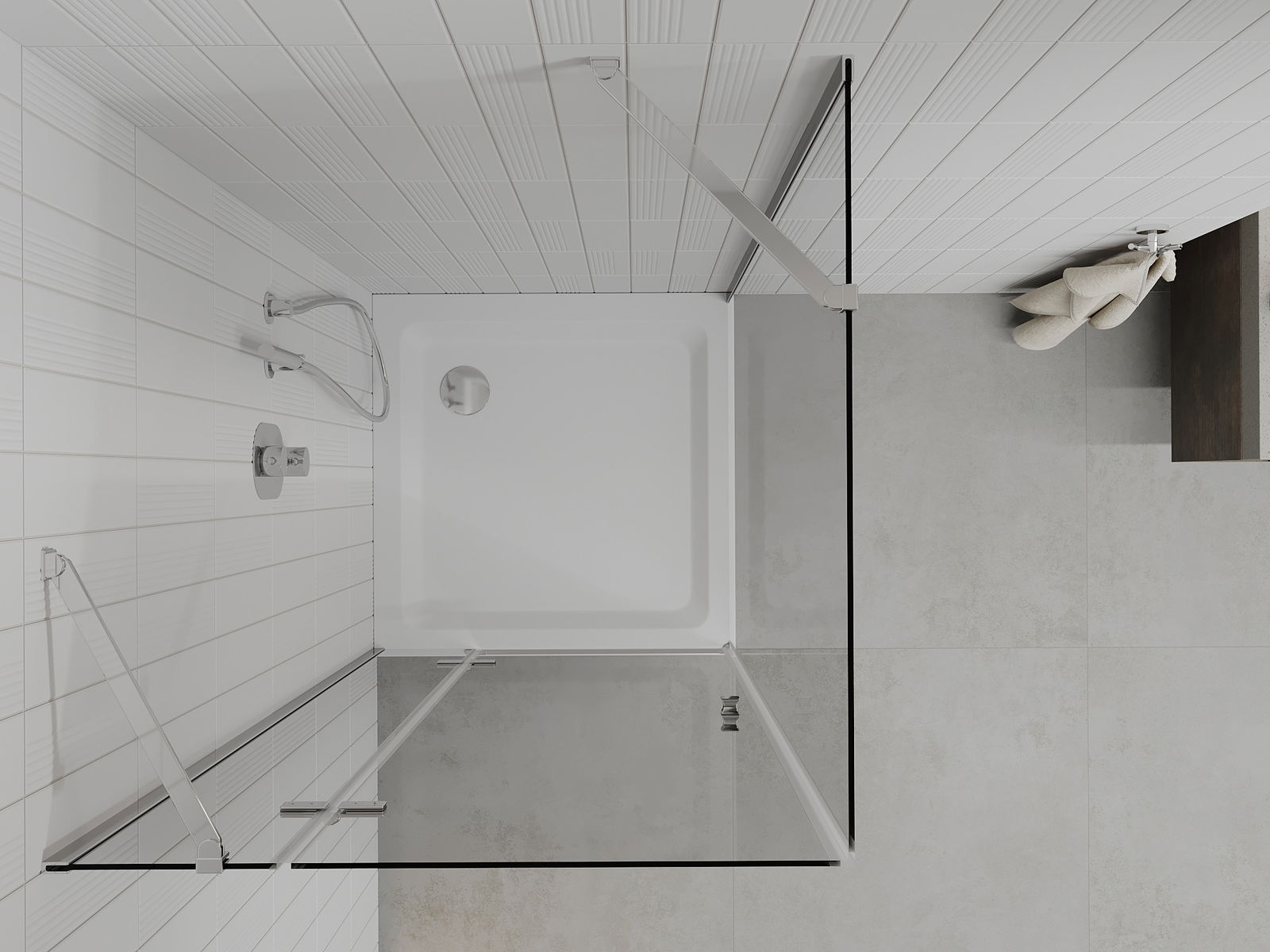 La poignée pratique et confortable est fabriquée en métal durable et résistant. Sa forme à la mode, combinée à une finition assortie à la couleur des profilés, donne à l'ensemble un aspect moderne et stylé, soulignant l'esthétique de chaque salle de bain.