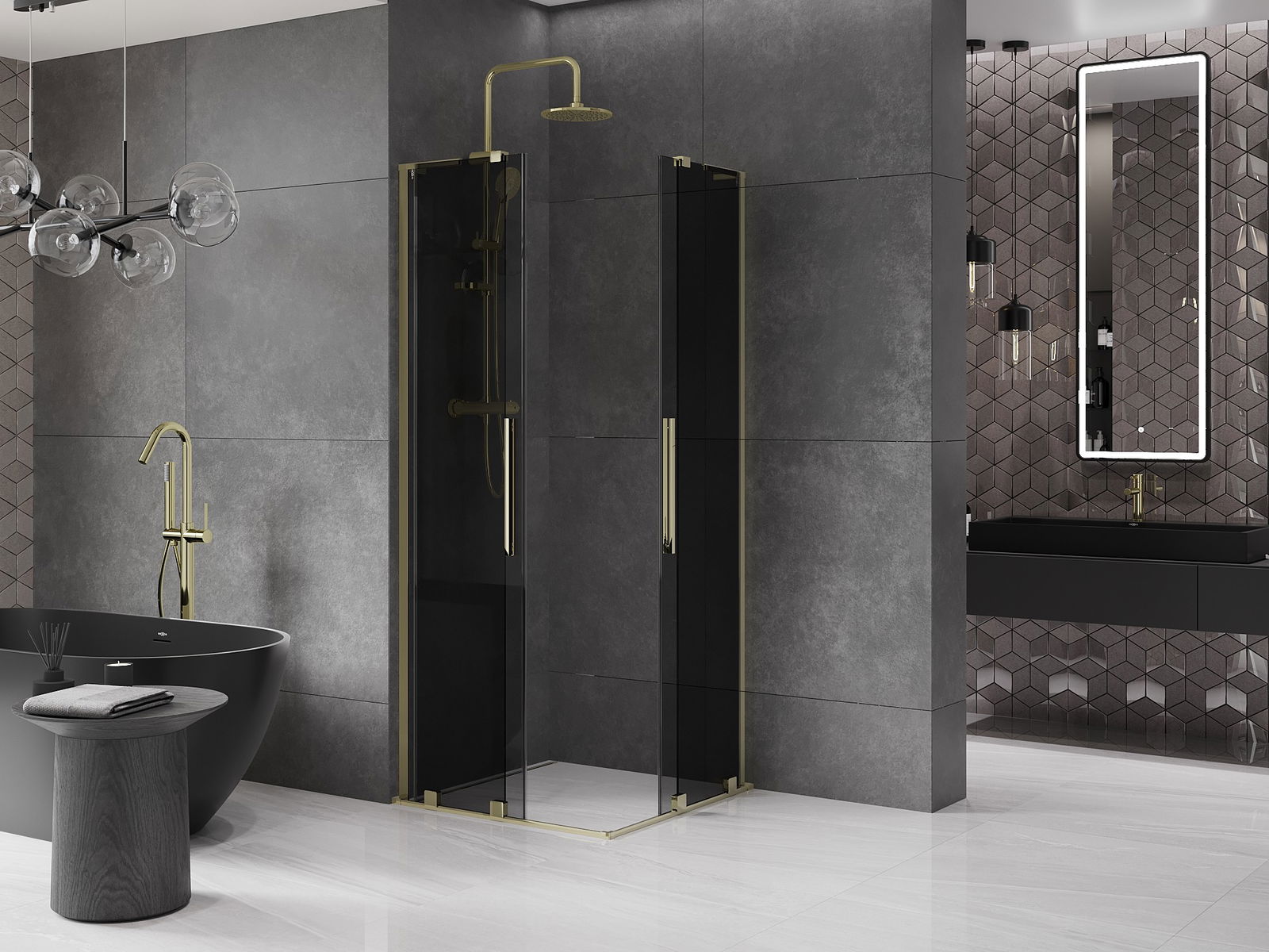 Mexen Velar L Duo cabine de douche coulissante 100 x 100 cm, graphite, or - 871-100-100-02-43-50