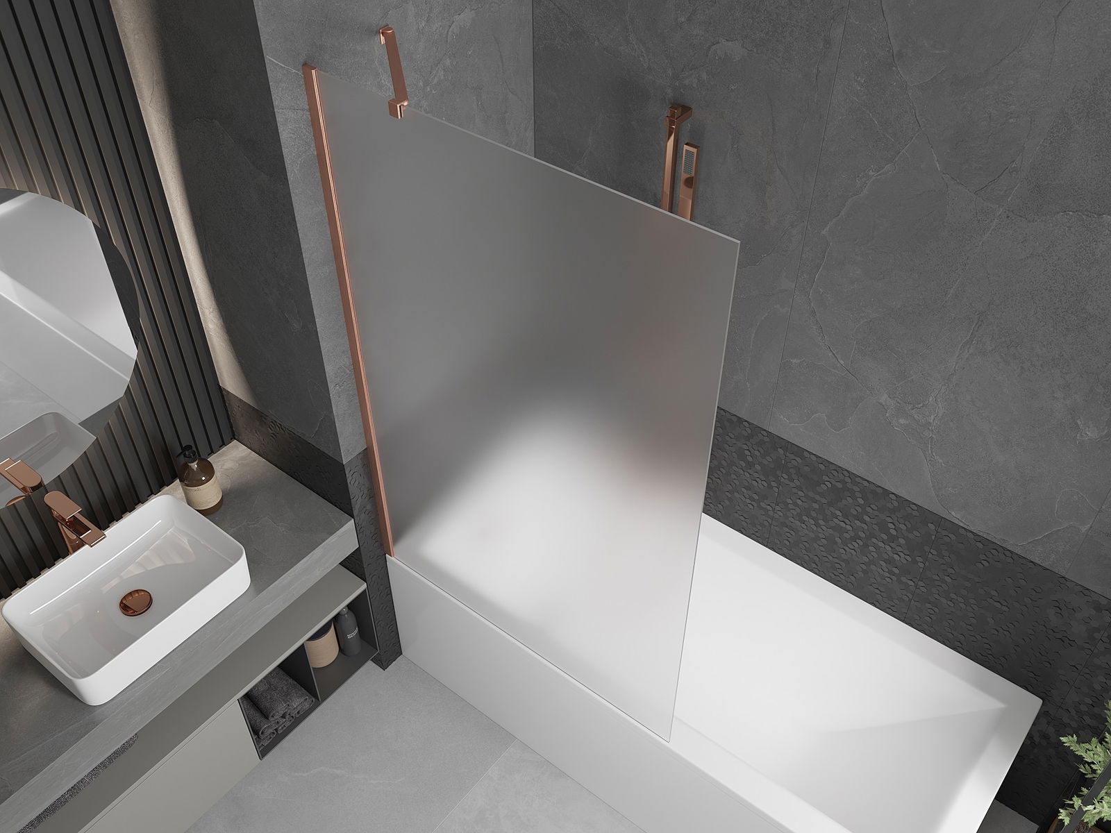 Mexen Next paroi de baignoire 1 volet 100 x 150 cm, givré, cuivre brossé - 895-100-000-00-30-65