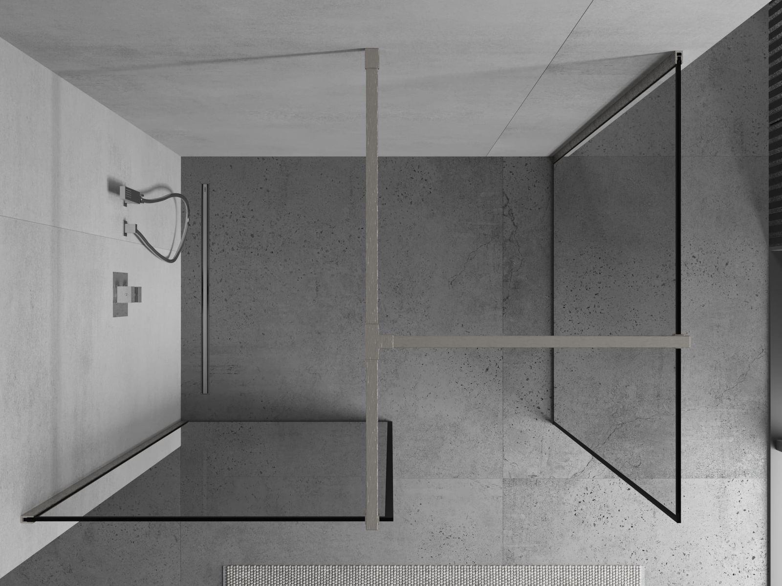 Mexen Kioto paroi de douche Walk-in 150 x 110 cm, cadre noir, nickel brossé - 800-150-202-97-70-110