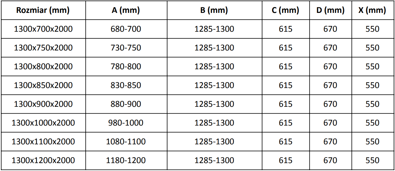 Taille : 130x75 cm (porte 130 cm, paroi 75 cm)
