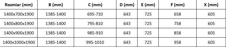 Taille : 140x90 cm (porte 140 cm, paroi 90 cm)