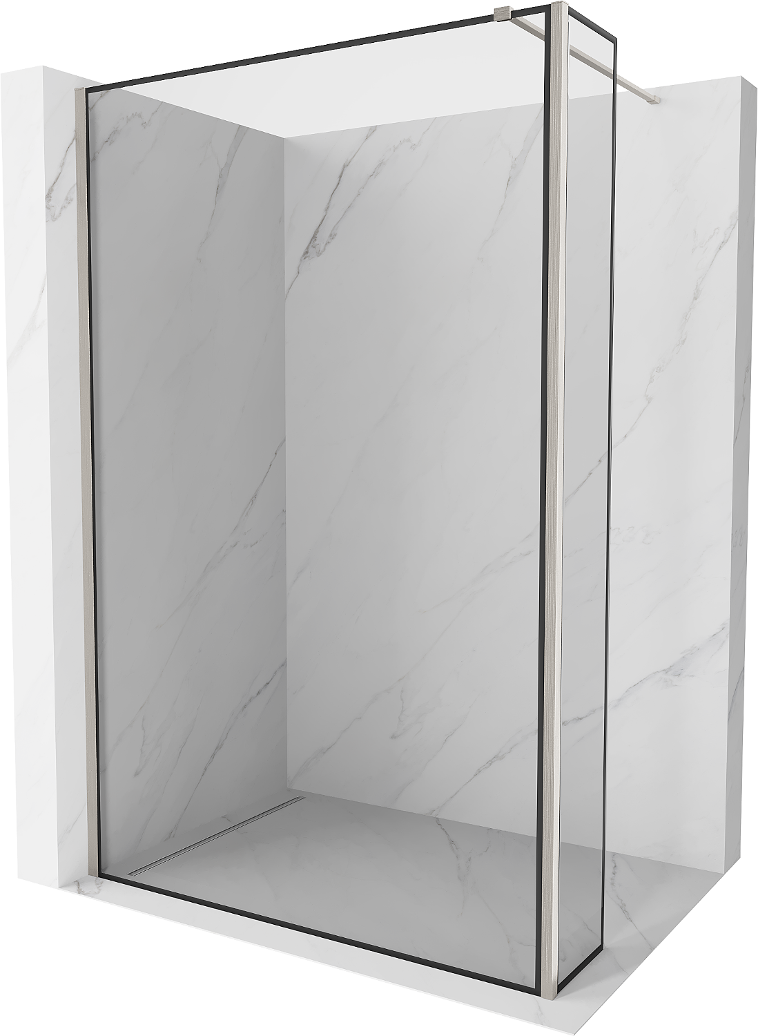 Mexen Kioto paroi de douche Walk-in 130 x 40 cm, cadre noir, nickel brossé - 800-130-212-97-70-040