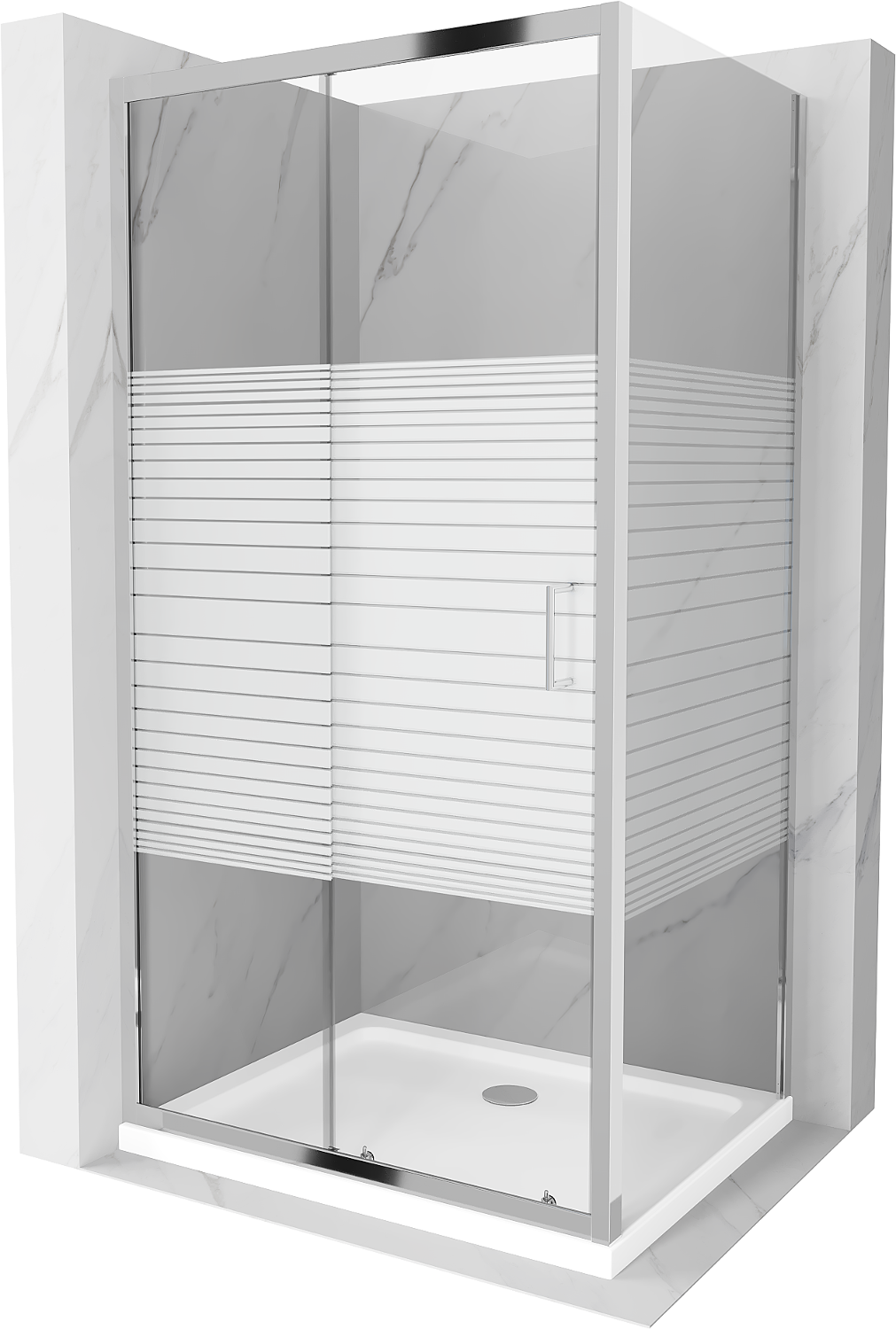 Mexen Apia cabine de douche coulissante 120 x 70 cm, bandes blanches, chrome + bac plat - 840-120-070-01-20-4010