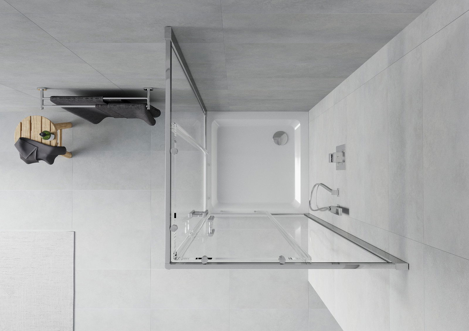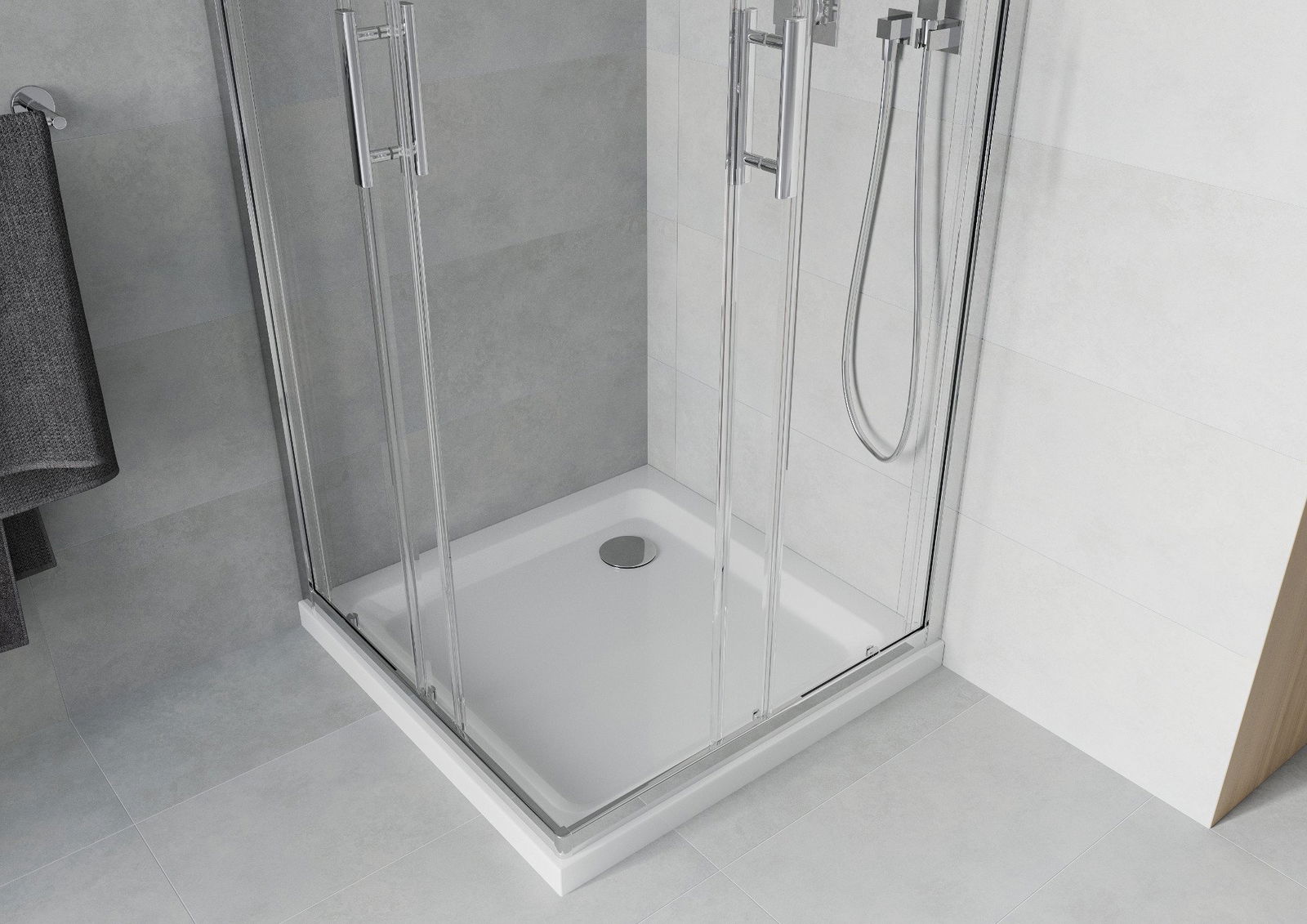 Mexen Rio cabine de douche carrée 80 x 80 cm, transparent, chrome + receveur Flat, blanc - 860-080-080-01-00-4010