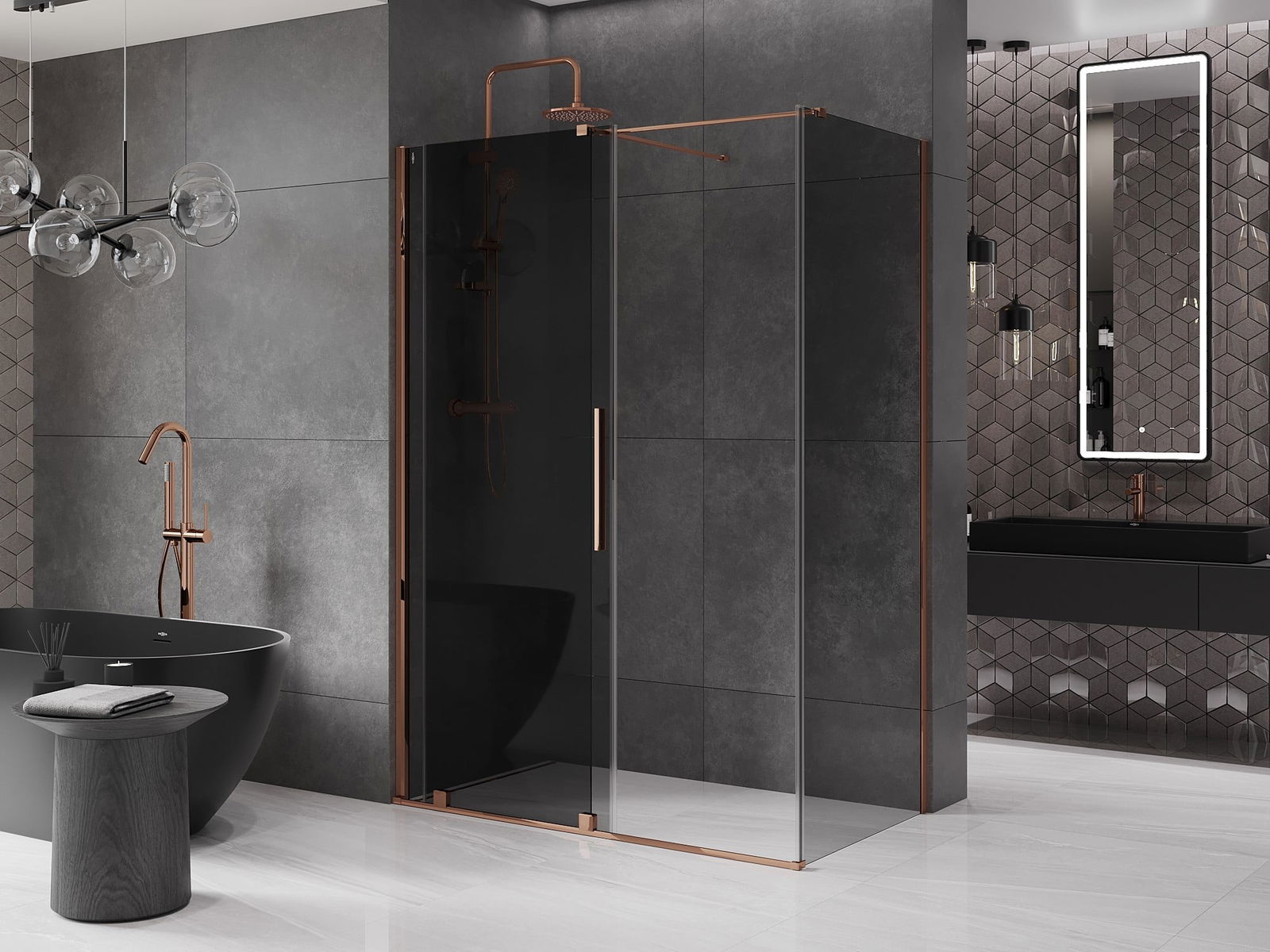 Mexen Velar cabine de douche coulissante 160 x 100 cm, graphite, or rose - 871-160-100-41-60