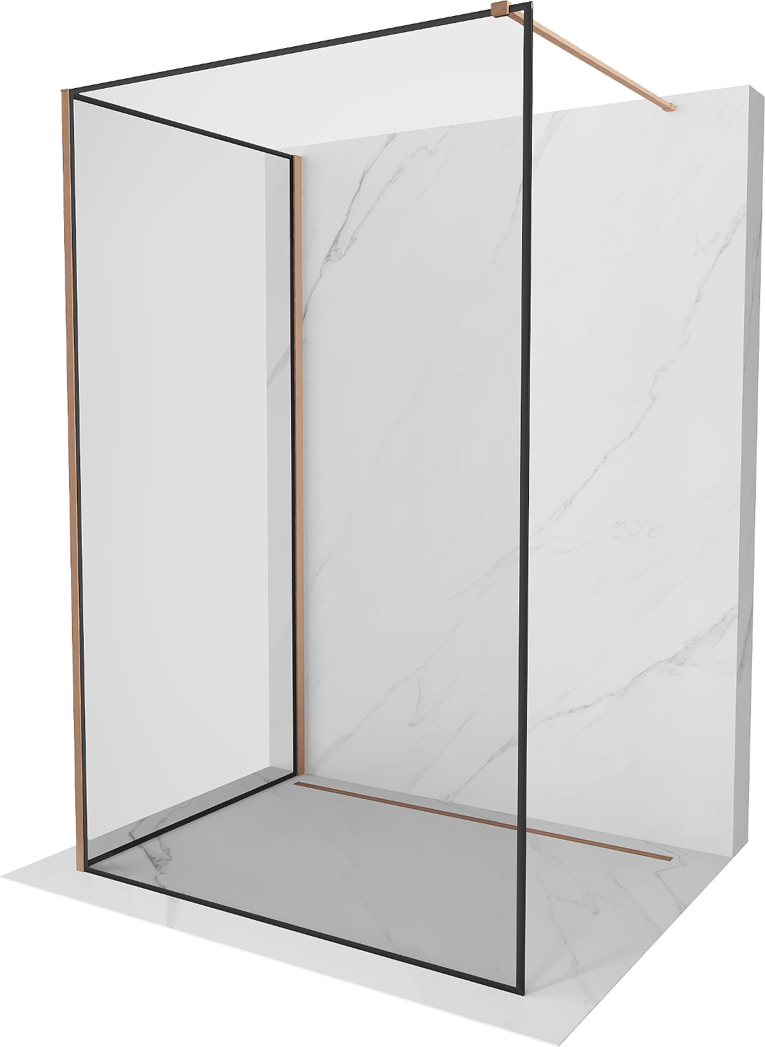 Mexen Kioto Paroi de douche Walk-in 90 x 70 cm, cadre noir, cuivre brossé - 800-090-212-65-70-070