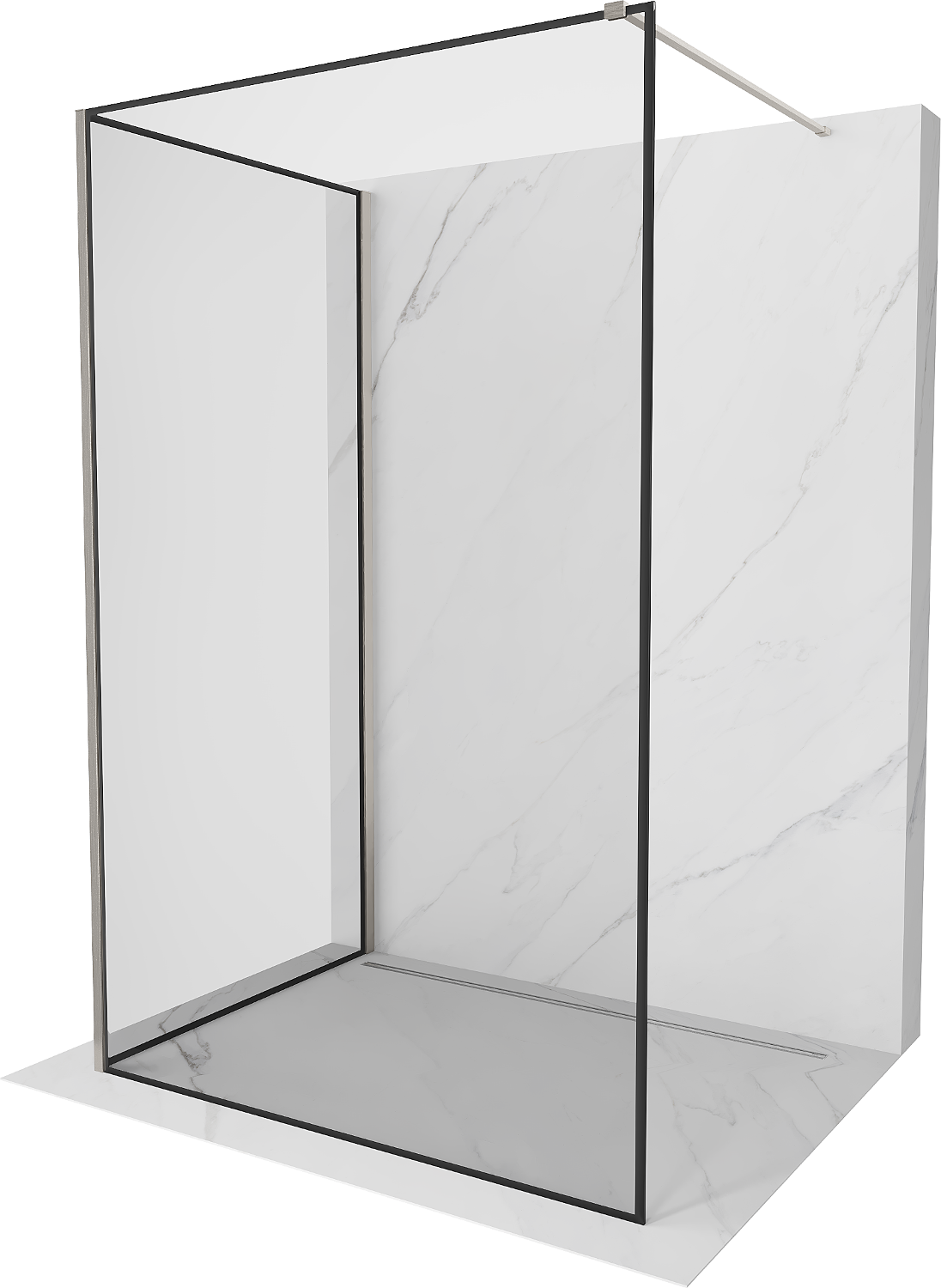 Mexen Kioto paroi de douche Walk-in 90 x 80 cm, cadre noir, nickel brossé - 800-090-212-97-70-080