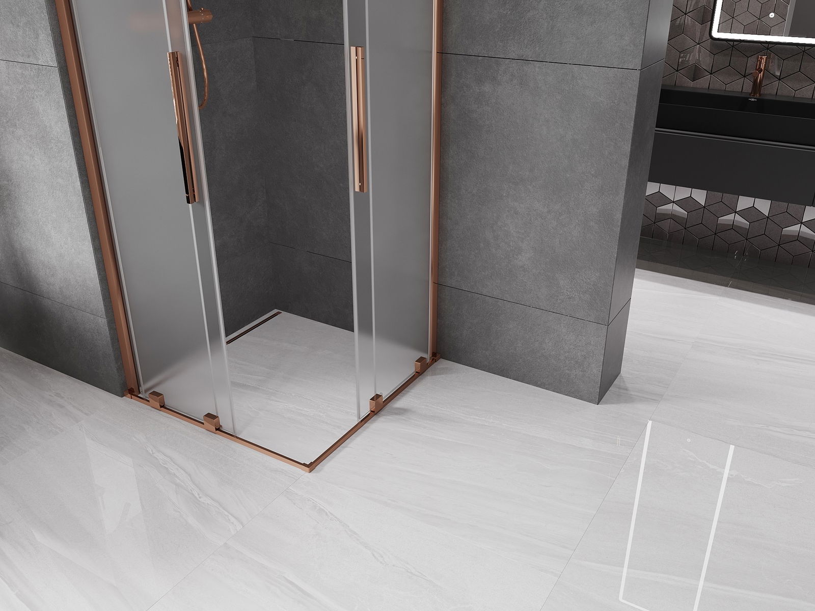 Mexen Velar Duo cabine de douche coulissante 90 x 90 cm, givre, or rose - 871-090-090-32-60