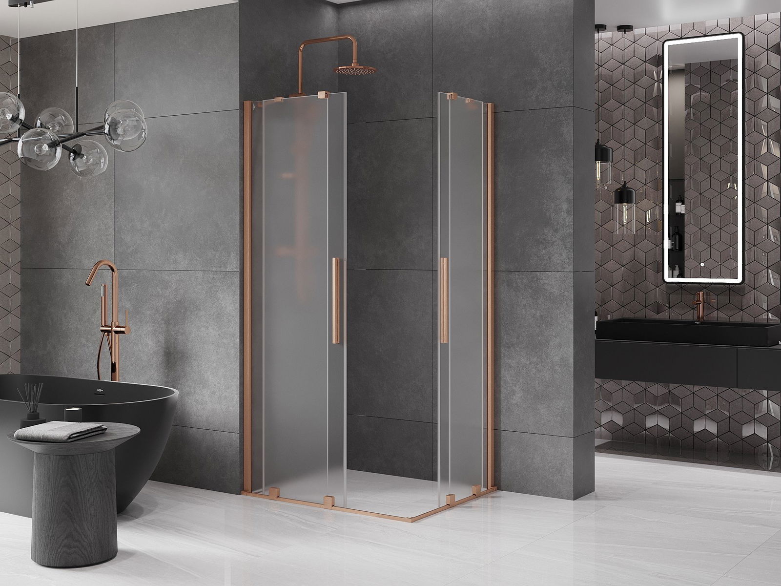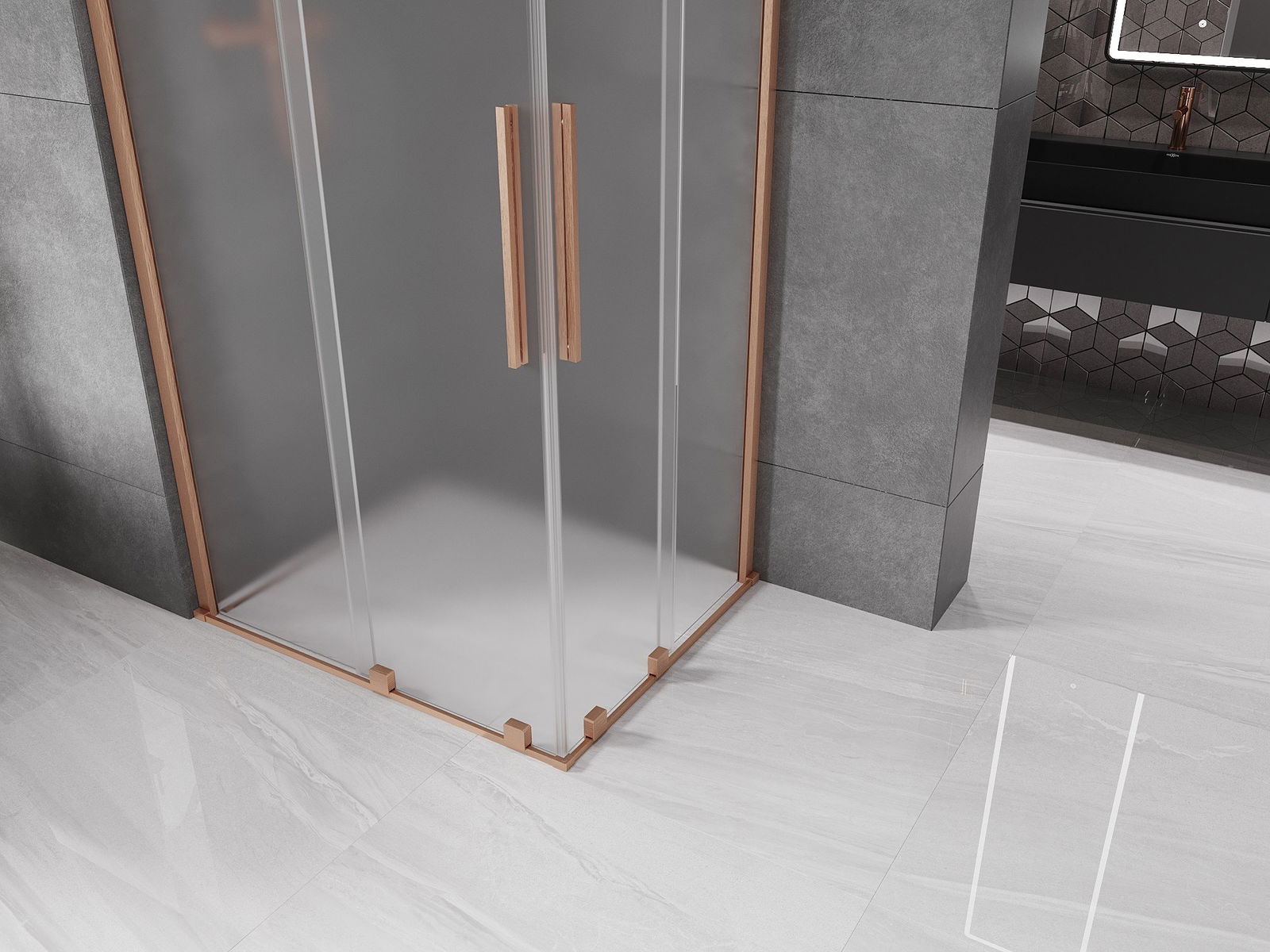Mexen Velar Duo cabine de douche coulissante 100 x 90 cm, givre, cuivre brossé - 871-100-090-32-65