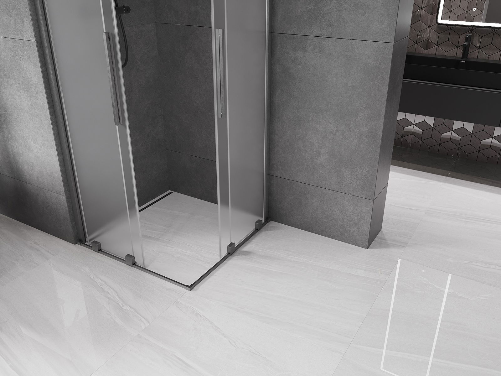 Mexen Velar Duo cabine de douche coulissante 90 x 90 cm, givré, gris canon brossé - 871-090-090-32-66