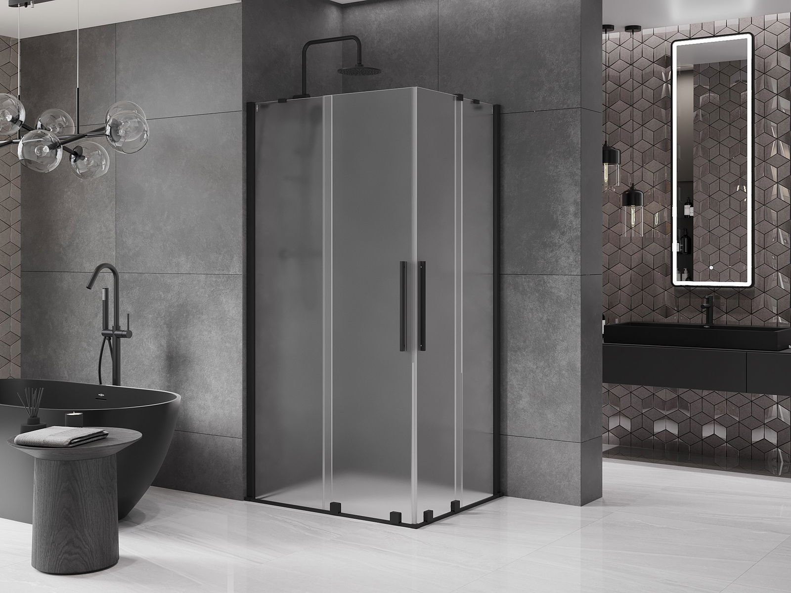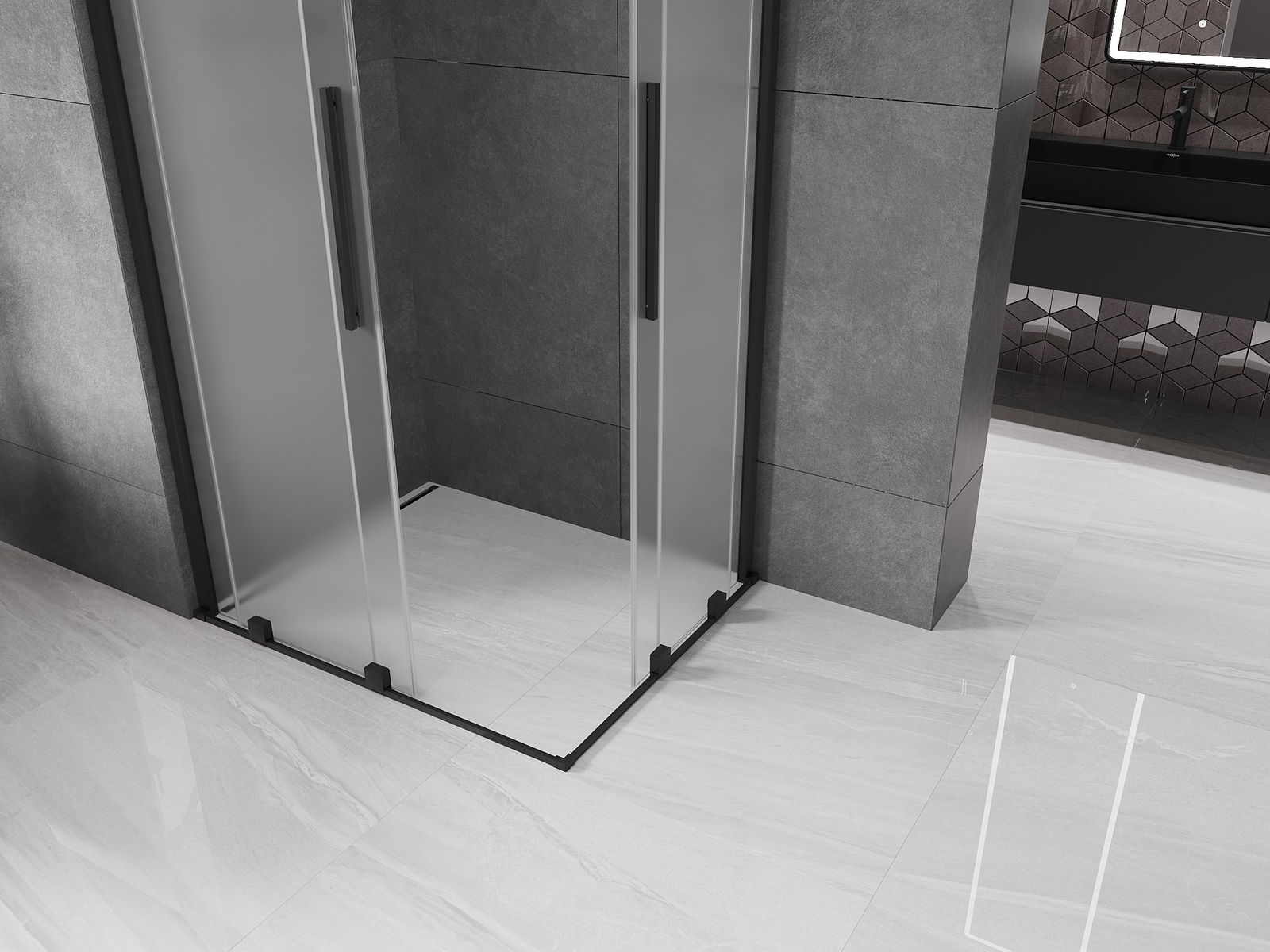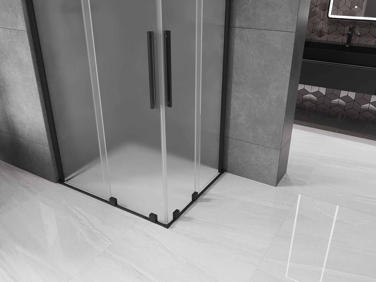 Mexen Velar Douche à double cabine coulissante 90 x 80 cm, givrée, noire - 871-090-080-32-70