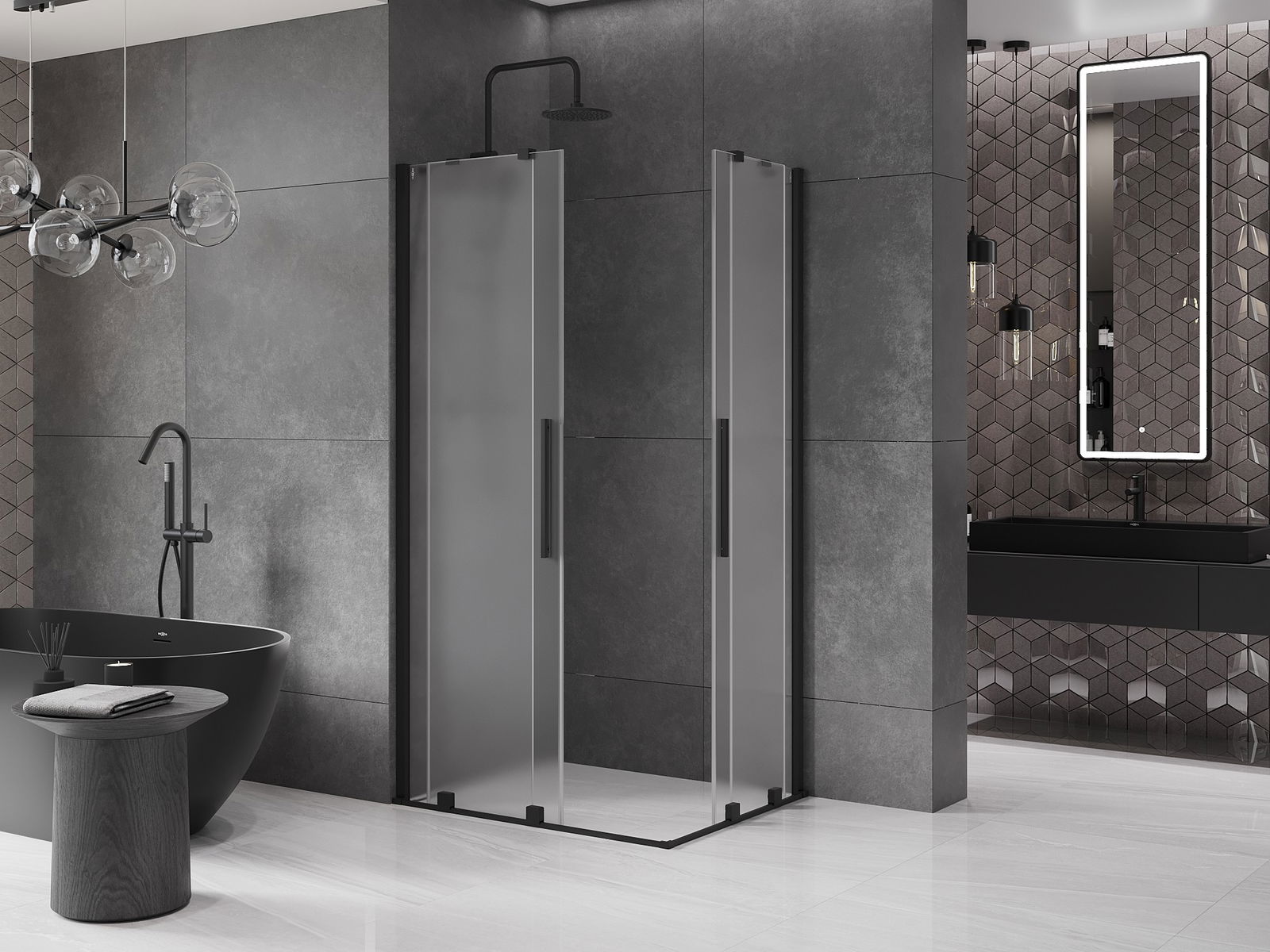 Mexen Velar Duo cabine de douche coulissante 100 x 90 cm, givrée, noire - 871-100-090-32-70