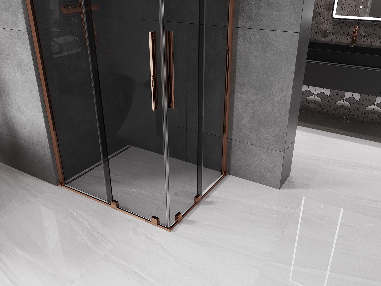 Mexen Velar Duo cabine de douche coulissante 90 x 80 cm, graphite, or rose - 871-090-080-42-60