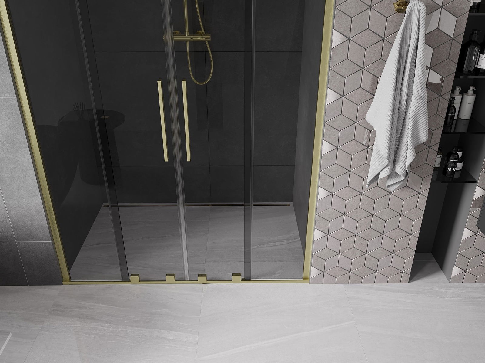 Mexen Velar Duo porte de douche coulissante 160 cm, graphite, or brossé - 871-160-000-42-55