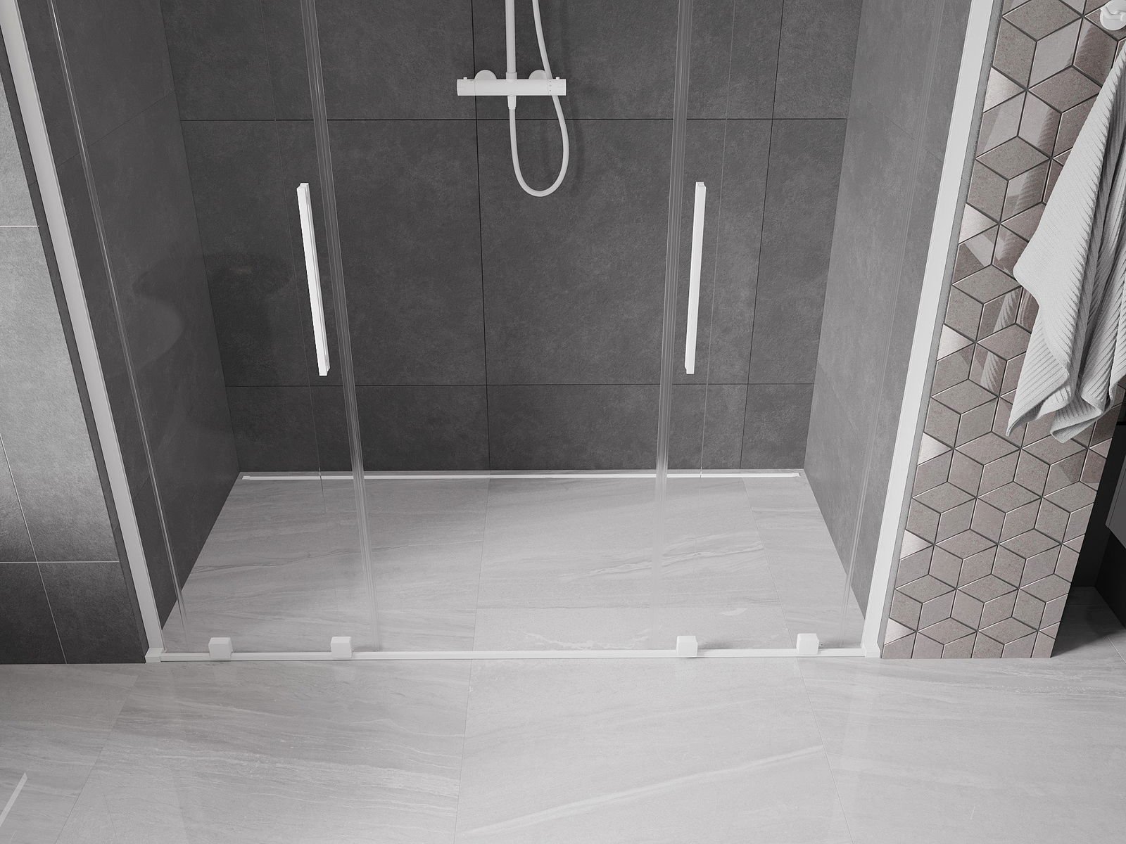 Mexen Velar L Duo portes de douche coulissantes 200 cm, transparentes, blanches - 871-200-003-02-20