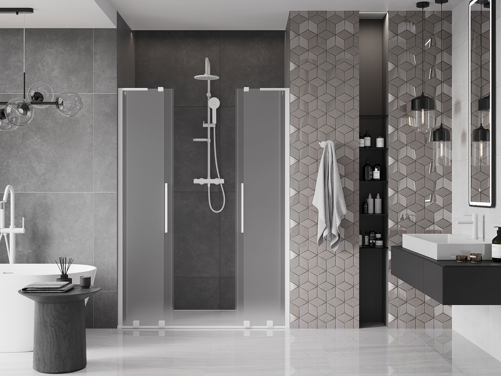 Mexen Velar L Duo porte de douche coulissantes 140 cm, givré, blanc - 871-140-003-32-20