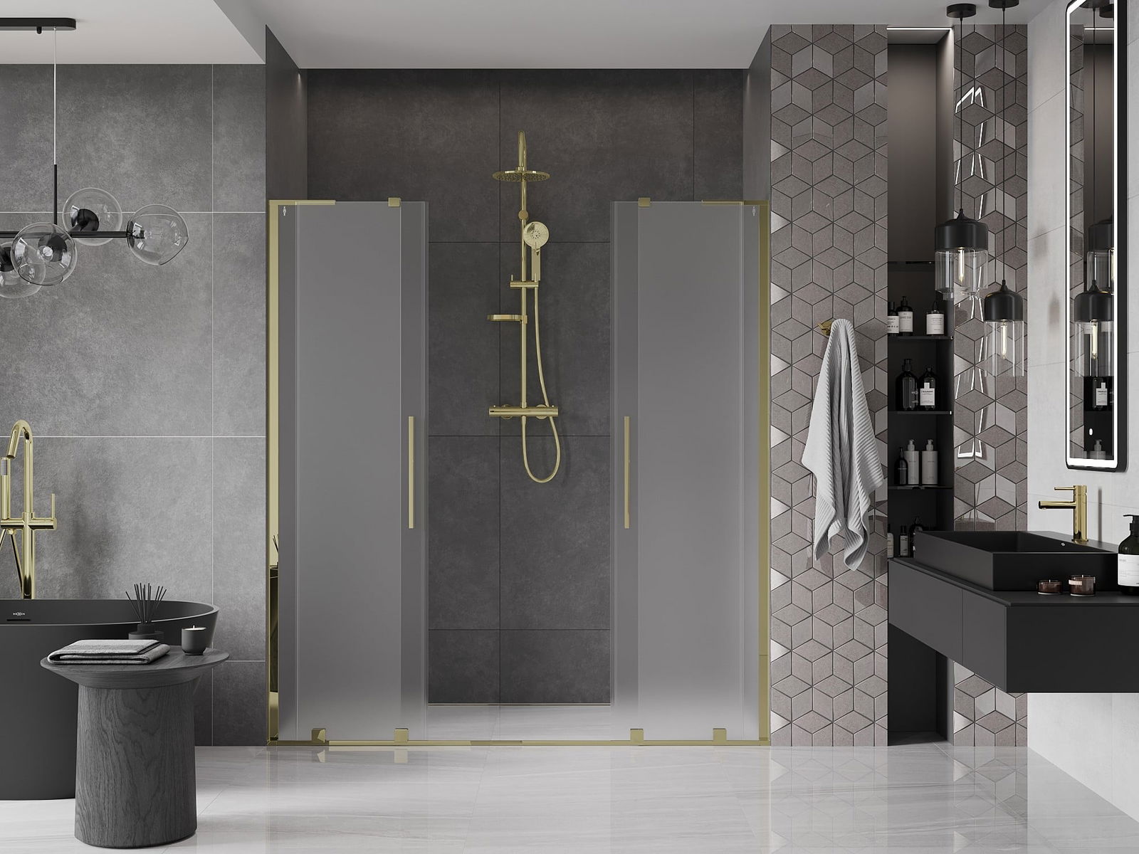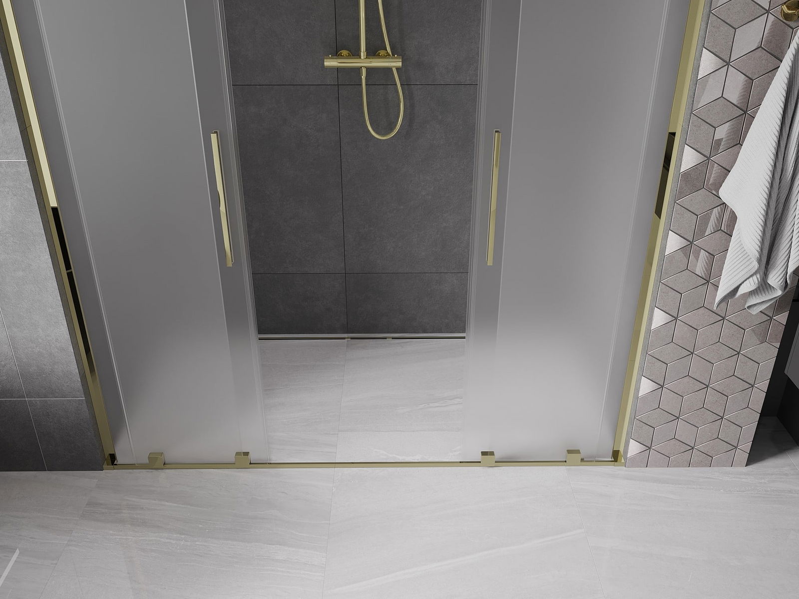 Mexen Velar L Duo porte de douche coulissante 170 cm, givré, or - 871-170-003-32-50