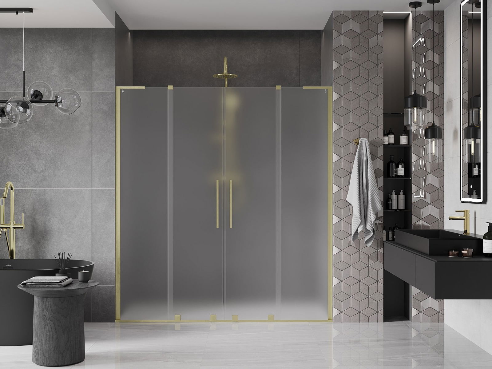 Mexen Velar L Duo porte de douche coulissante 170 cm, givré, or brossé - 871-170-003-32-55